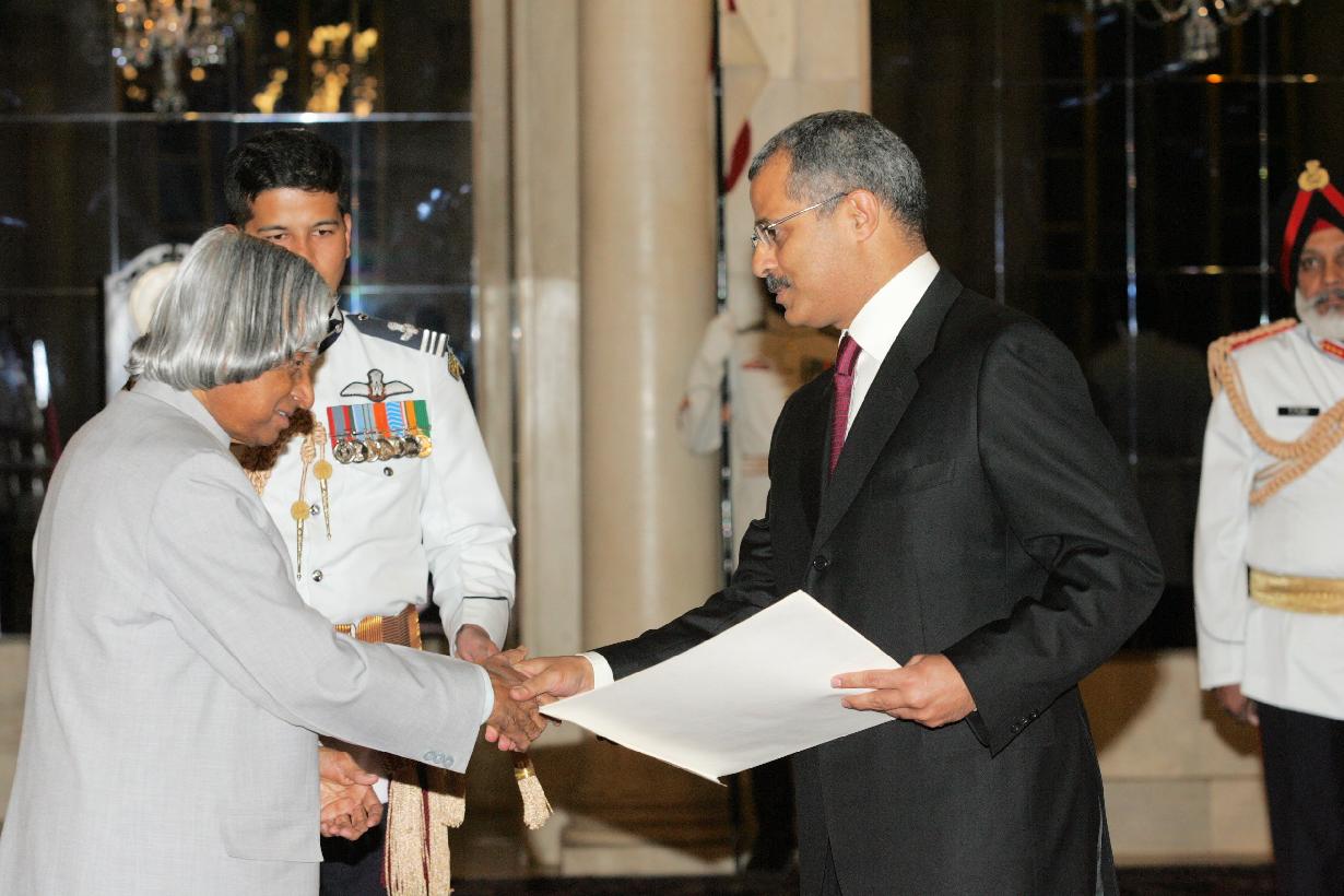 | Caption: | The Ambassador-Designate of the Republice of Yeman, HE Mr Mustapha Ahmed Mohamed Noman presenting his credentials to the President of India, Dr A P J Abdul Kalam at the Ashok Hall of Rashtrapati Bhavan in New Delhi on April 05, 2006 |