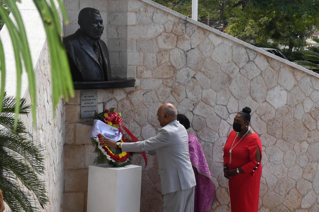| Caption: | The President of India, Shri Ram Nath Kovind laid a wreath at Shrine of the Rt. Excellent Marcus Mosiah Garvey, at Kingston, in Jamaica on May 16, 2022. |