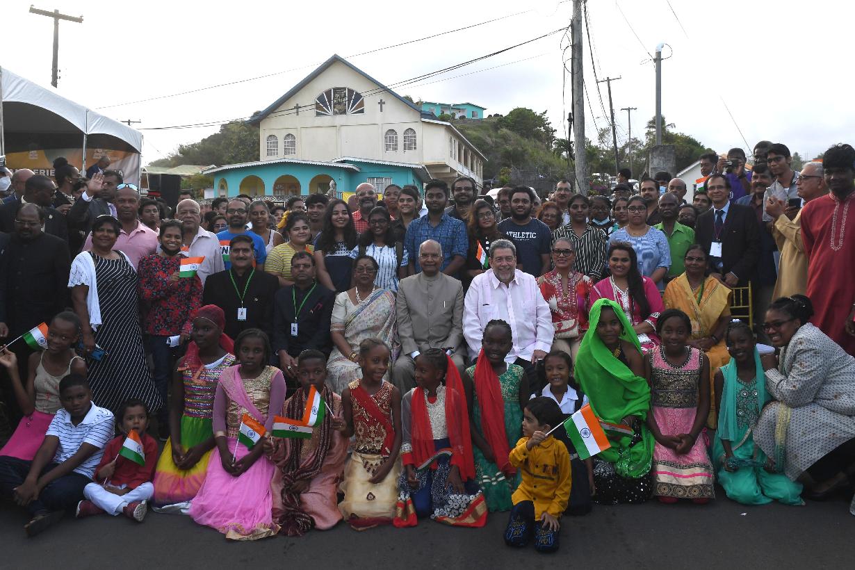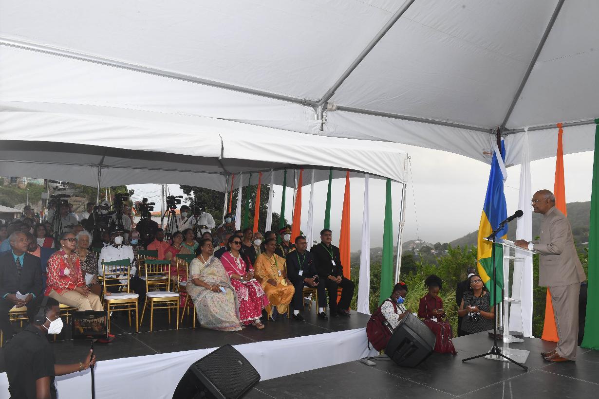 | Caption: | The President of India, Shri Ram Nath Kovind renamed Calder Road to India Drive , in the presence of the Prime Minister of Saint Vincent and the Grenadines, Dr. the Hon. Ralph E. Gonsalves, at a function, in Kingstown, Saint Vincent and the Grenadines on May 19, 2022. |