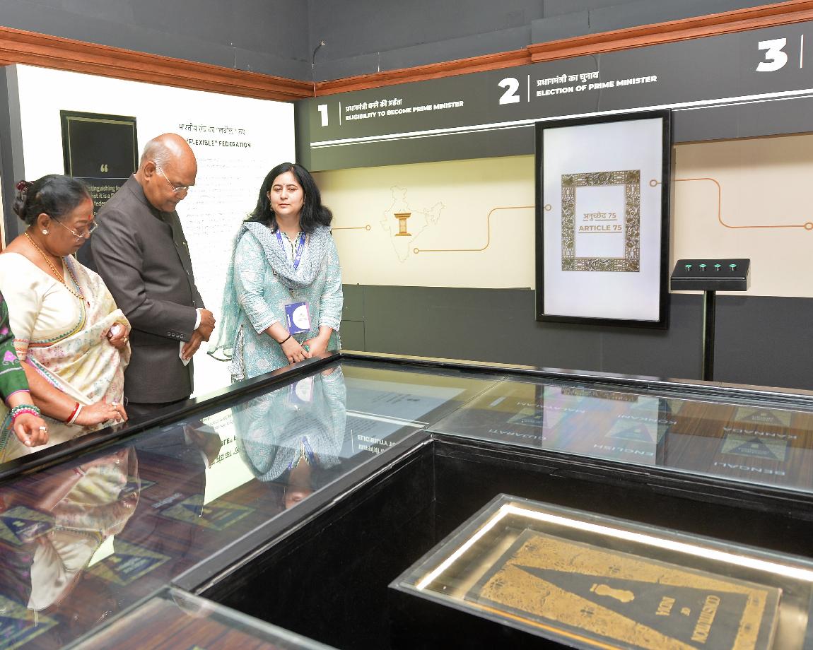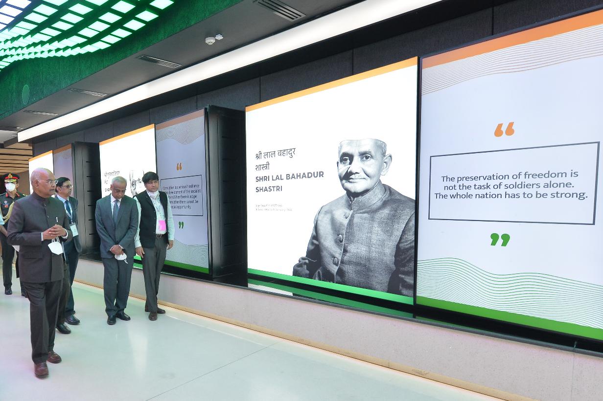 | Caption: | The President of India, Shri Ram Nath Kovind visits the Pradhanmantri Sangrahalaya at Teen Murti Bhavan, in New Delhi on May 30, 2022. The Pradhanmantri Sangrahalaya is a tribute to former Prime Ministers and other nation builders whose contributions are highlighted using interactive digital technologies. |