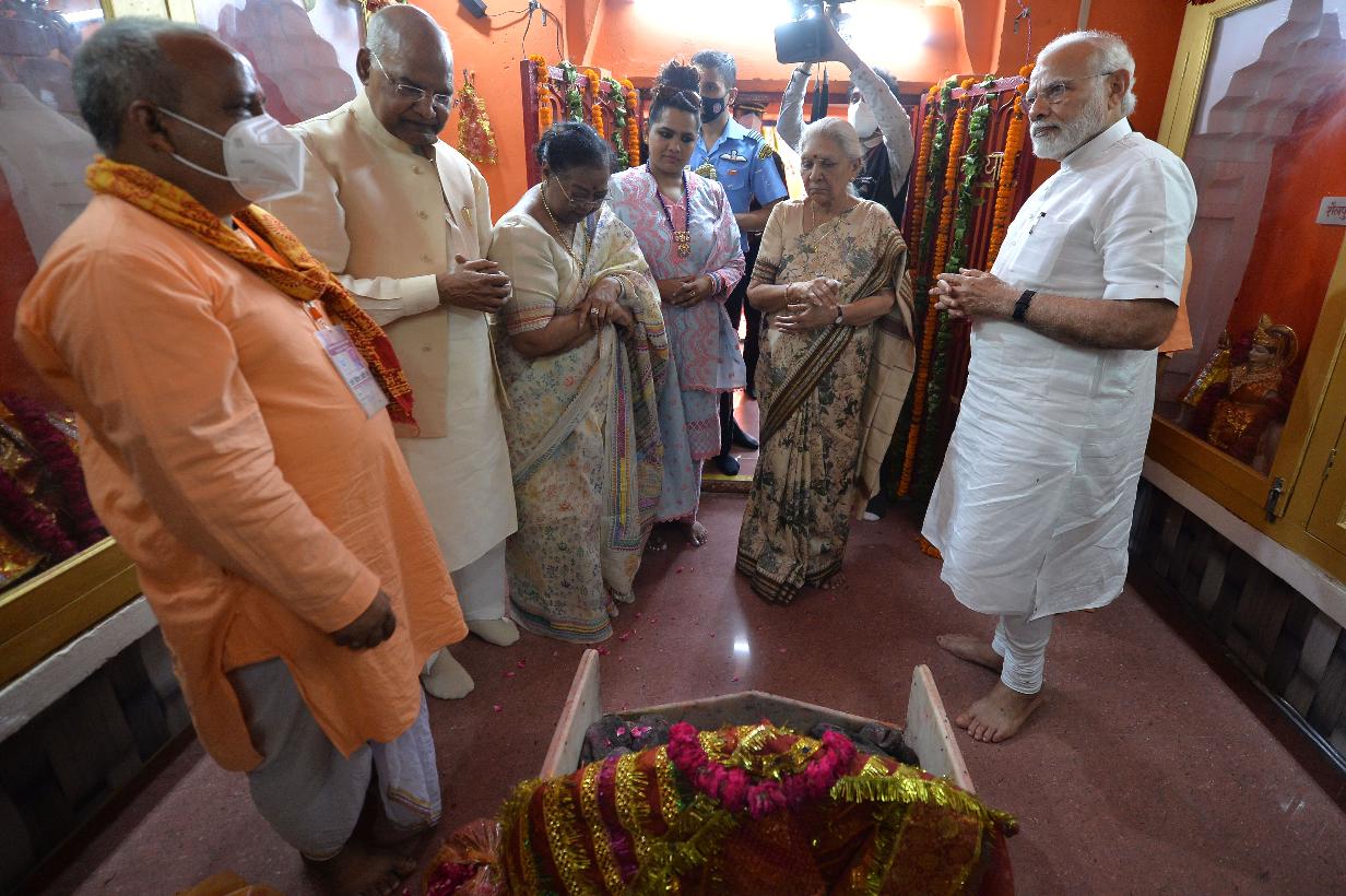 | Caption: | The President of India, Shri Ram Nath Kovind along with the Prime Minister of India, Shri Narendra Modi visited Pathri Mata Mandir and paid floral tributes at the statue of Babasaheb Dr. B.R. Ambedkar, at his native village Paraunkh, in Kanpur Dehat on June 03, 2022. |