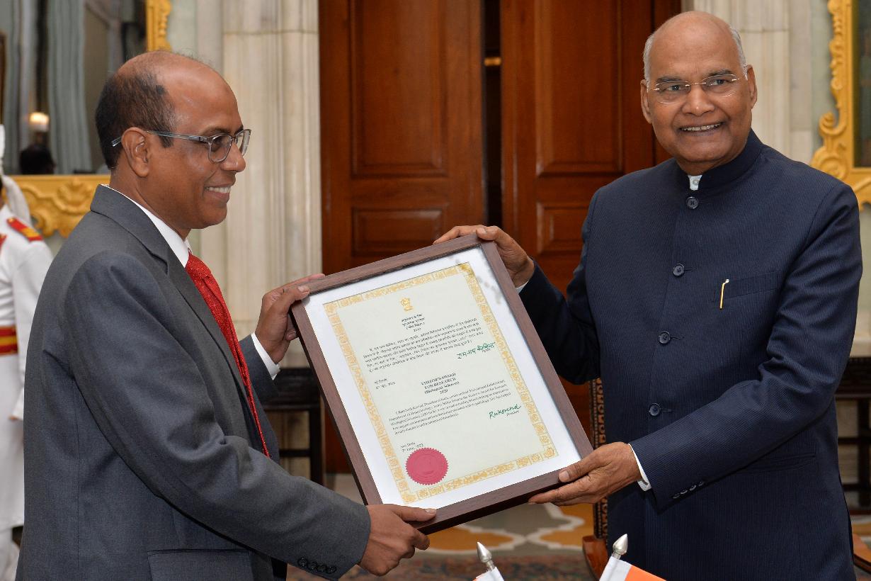 | Caption: | The President of India, Shri Ram Nath Kovind presenting the Visitor s Award 2020 for Research (Biological Sciences) to Prof. Mohammad Zahid Ashraf, Department of Biotechnology, Jamia Millia Islamia for his research on hypoxia-induced thrombosis, at Rashtrapati Bhavan on June 07, 2022. |