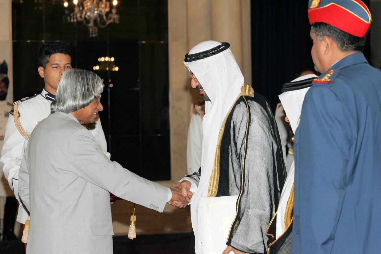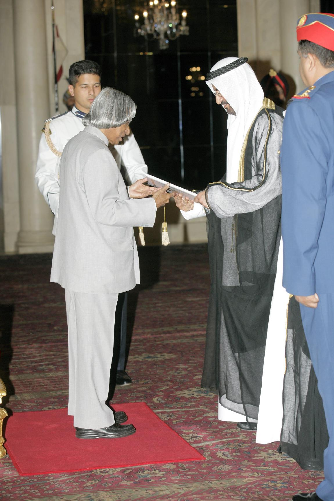 | Caption: | The Ambassador-Designate of United Arab Emirates, HE Mr Abdulla Ebrahim A Alzoy Al Shehhi presenting his credentials to the President of India, Dr A P J Abdul Kalam at the Ashok Hall of Rashtrapati Bhavan in New Delhi on April 05, 2006 |