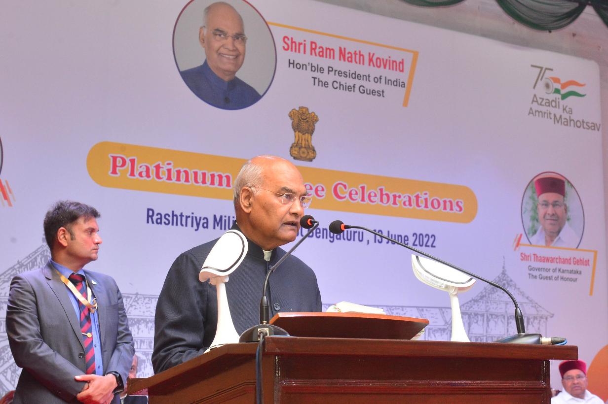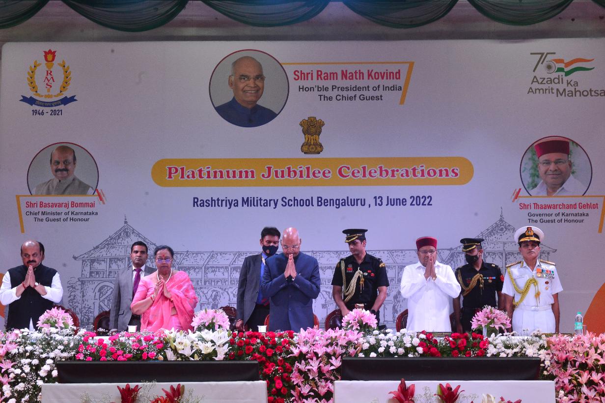 | Caption: | The President of India, Shri Ram Nath Kovind gracing the Platinum Jubilee Celebrations of Rashtriya Military School, Bengaluru on June 13, 2022. |