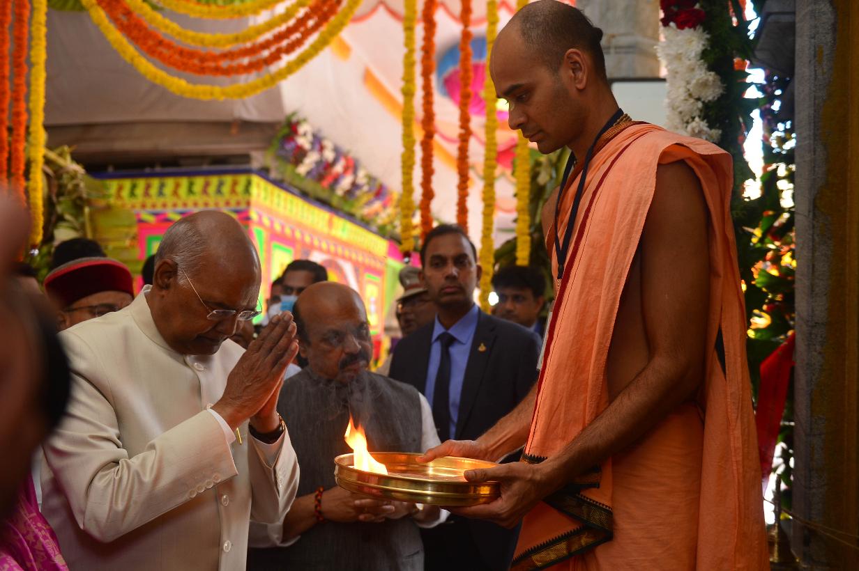 | Caption: | The President of India, Shri Ram Nath Kovind gracing the Lokarpana ceremony of Sri Rajadhiraja Govinda Temple, at Vaikuntha Hill, Vasanthapura, in Bengaluru on June 14, 2022. |