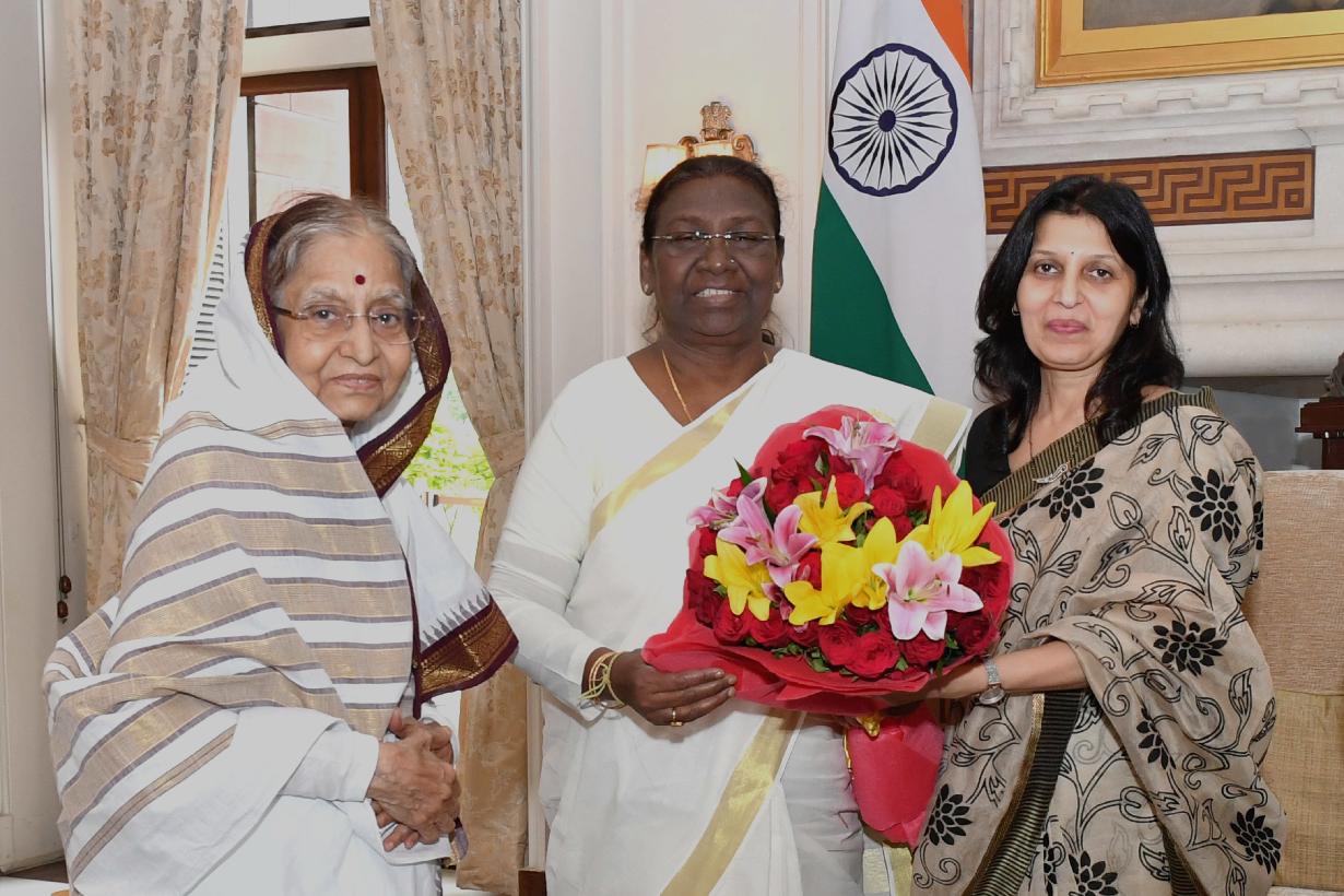 | Caption: | The former President of India, Smt. Pratibha Devisingh Patil along with her daughter met the President of India, Smt. Droupadi Murmu, at Rashtrapati Bhavan on July 26, 2022. |