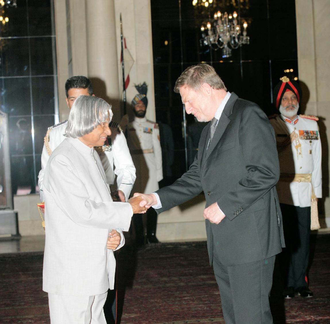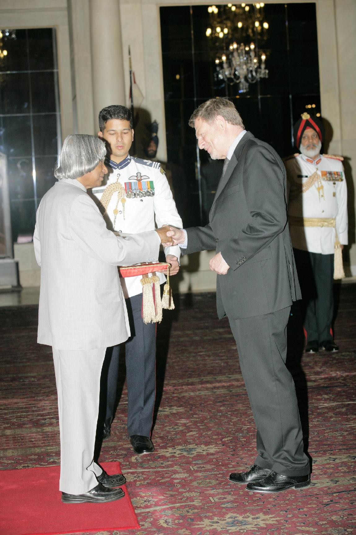 | Caption: | The Ambassador-Designate of the Federal Republiceof Germany, HE Mr Bernd Mutzelburg presenting his credentials to the President of India, Dr A P J Abdul Kalam at the Ashok Hall of Rashtrapati Bhavan in New Delhi on April 05, 2006 |