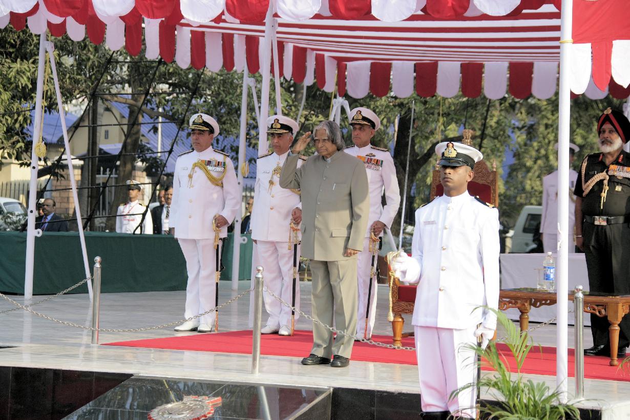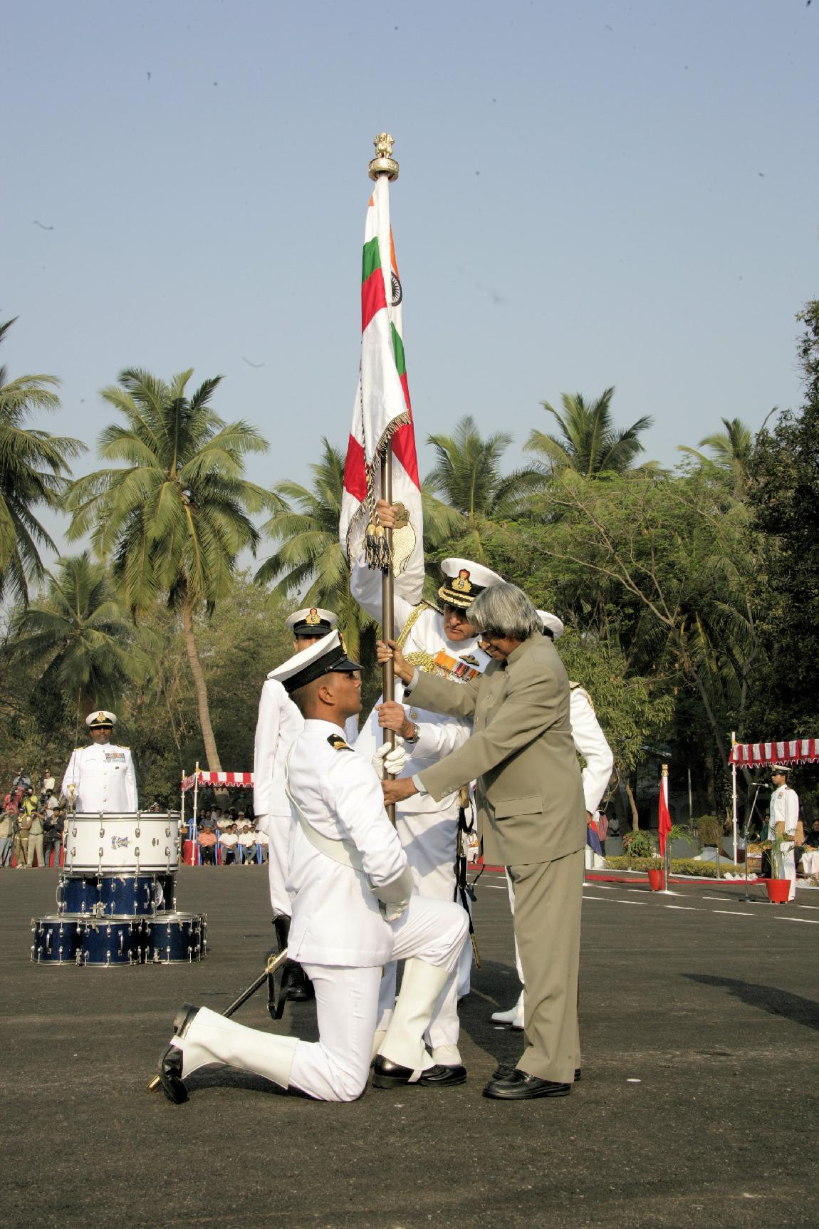 | Caption: | The President of India, Dr A P J Abdul Kalam presenting the Colour to Eastern Fleet at Visakhapatnam in Andhra Pradesh on Feb 13, 2006 |