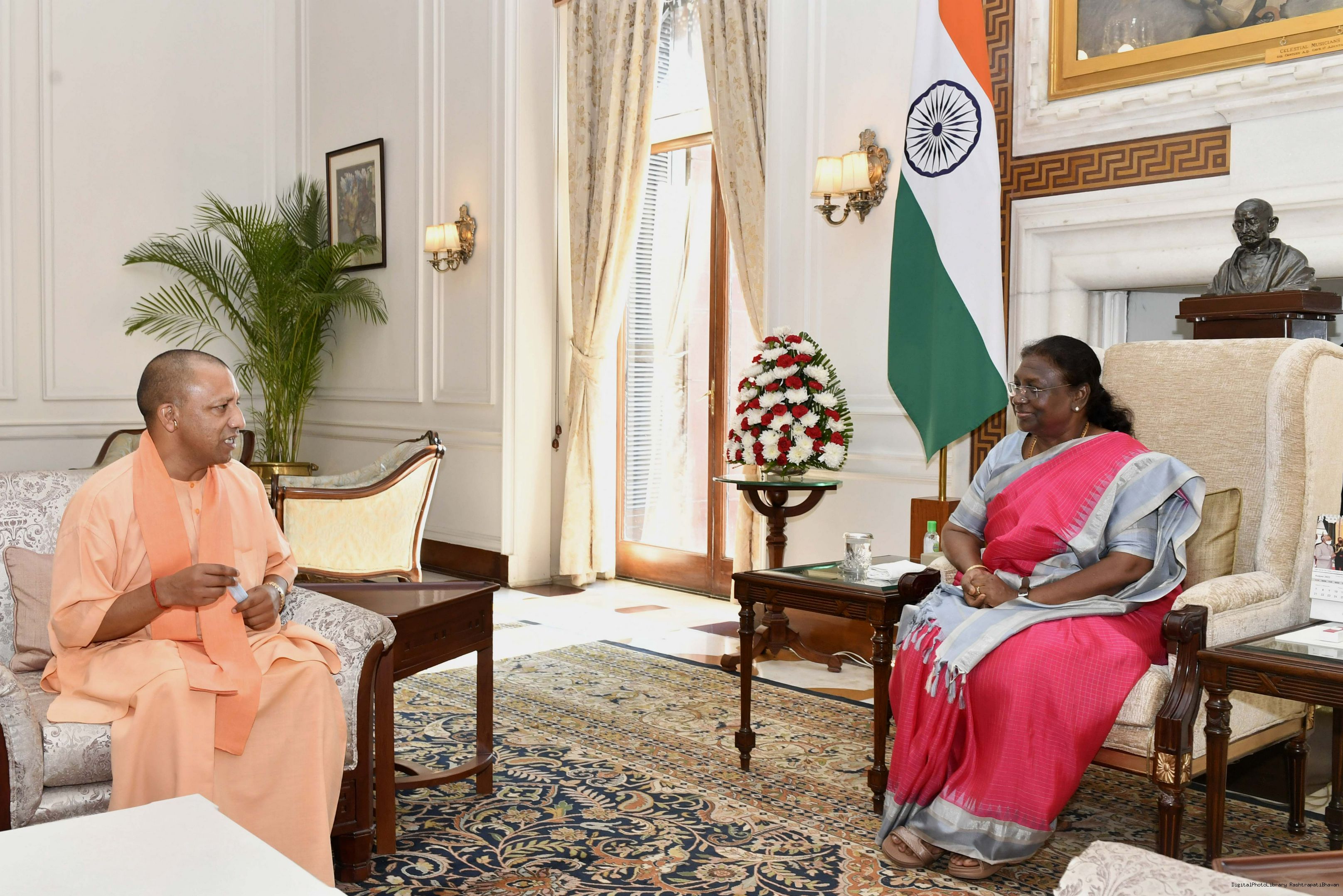 | Caption: | The Chief Minister of Uttar Pradesh, Shri Yogi Adityanath calling on the President of India, Smt. Droupadi Murmu, at Rashtrapati Bhavan on August 10, 2022. |
