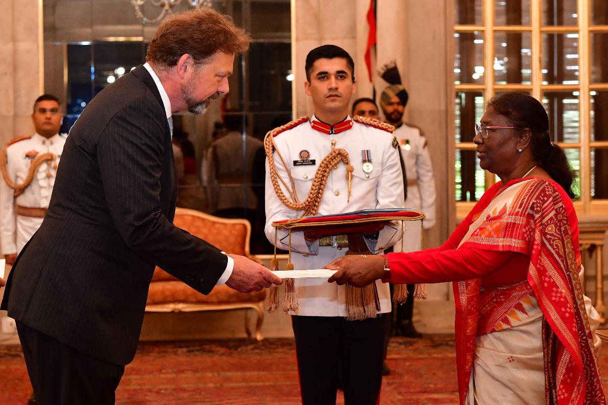 | Caption: | The Ambassador-designate of the Federal Republic of Germany, H.E. Dr. Philipp Ackermann presenting his credentials to the President of India, Smt. Droupadi Murmu, at Rashtrapati Bhavan on August 26, 2022. |