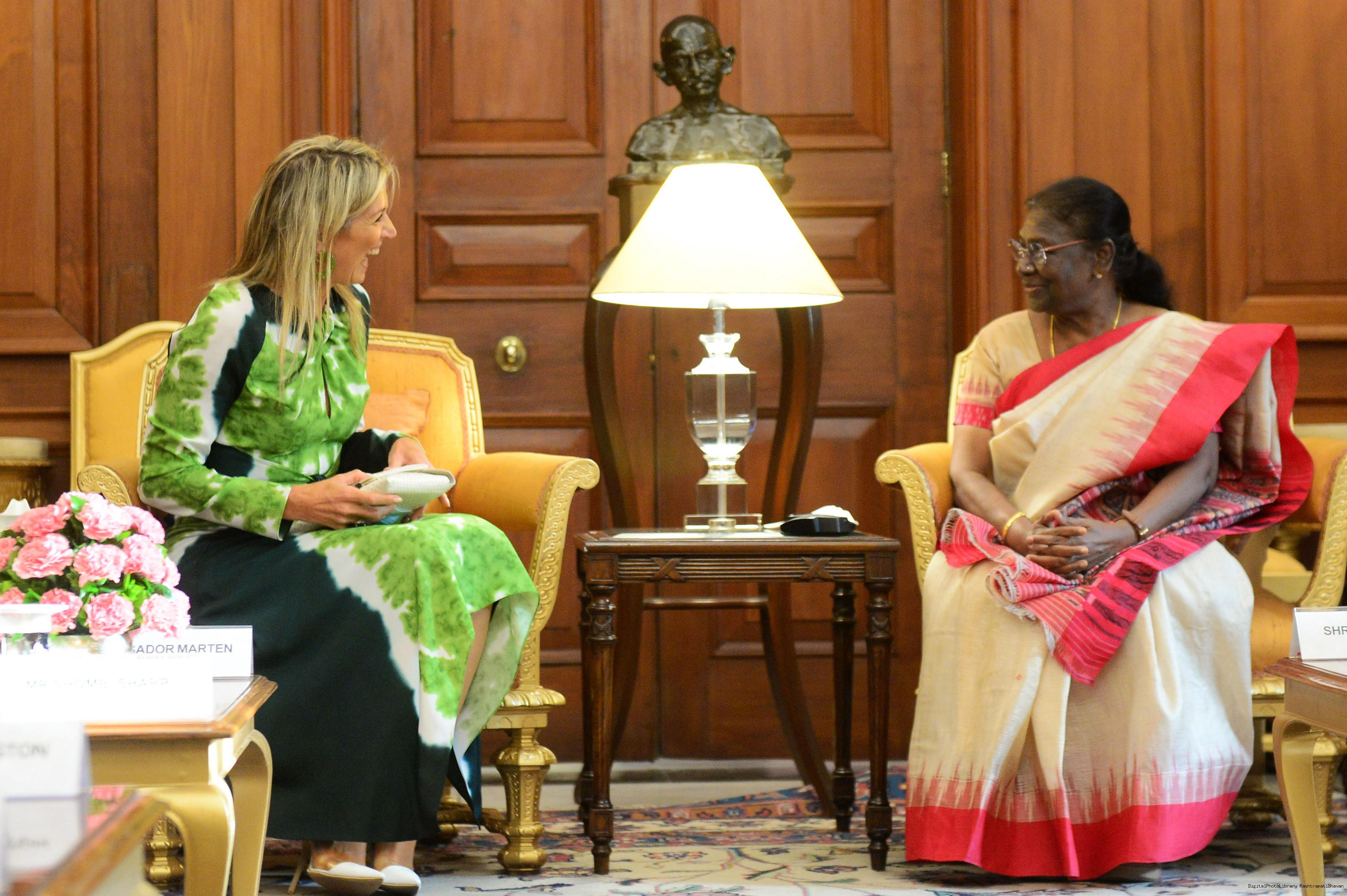 | Caption: | Her Majesty Queen Maxima of the Netherlands calling on the President of India, Smt. Droupadi Murmu, at Rashtrapati Bhavan on August 29, 2022. |