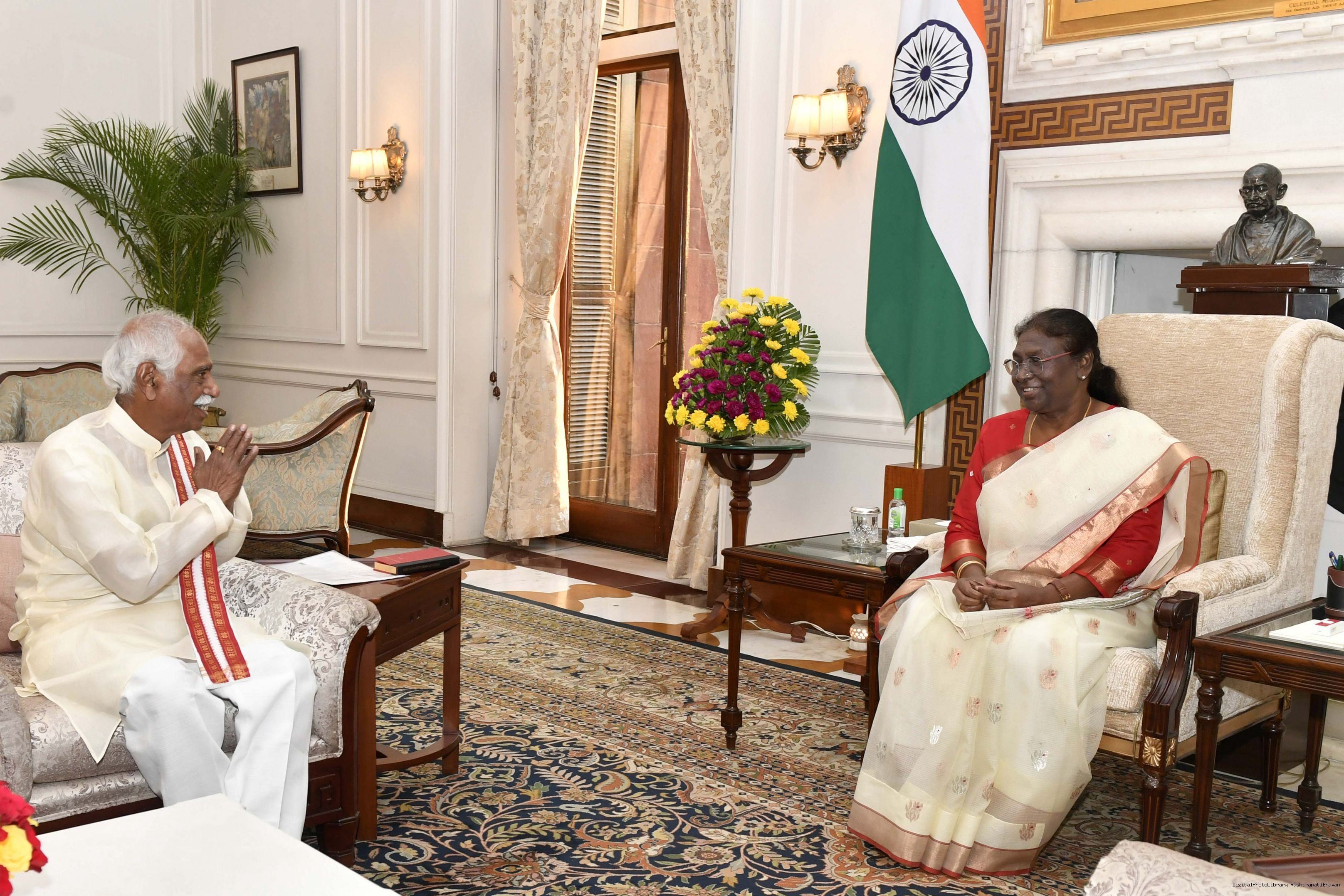 | Caption: | The Governor of Haryana, Shri Bandaru Dattatraya calling on the President of India, Smt. Droupadi Murmu, at Rashtrapati Bhavan on September 05, 2022. |