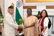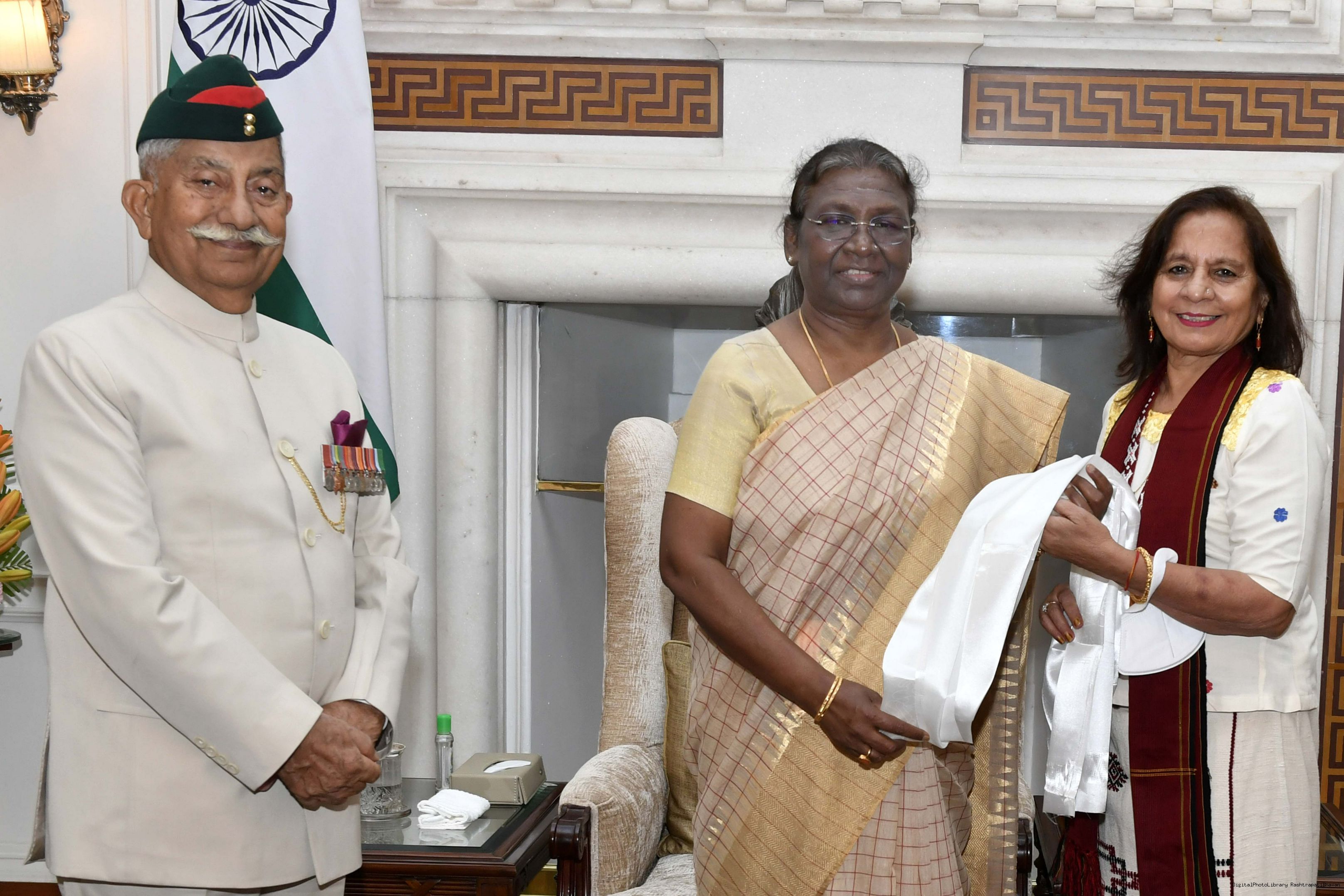| Caption: | The Governor of Arunachal Pradesh, Brig. (Dr.) B.D. Mishra (Retd.) along with his wife calling on the President of India, Smt. Droupadi Murmu, at Rashtrapati Bhavan on September 21, 2022. |
