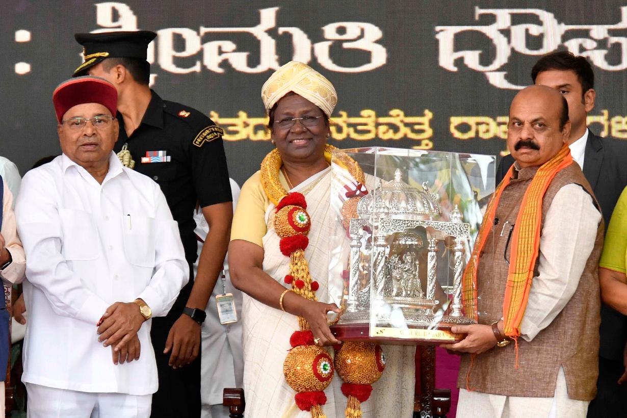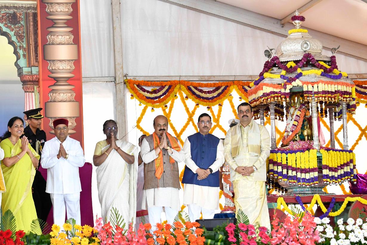 | Caption: | The President of India, Smt. Droupadi Murmu inaugurated the Mysuru Dasara Festival, at Chamundi Hills, Mysuru on September 26, 2022. |