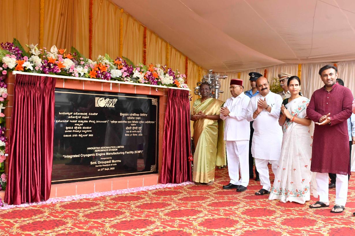 | Caption: | The President of India, Smt. Droupadi Murmu inaugurated the Integrated Cryogenic Engines Manufacturing Facility of Hindustan Aeronautics Limited, in Bengaluru, Karnataka on September 27, 2022. The President also laid the foundation stone for the Zonal Institute of Virology (South Zone) virtually on the occasion. |