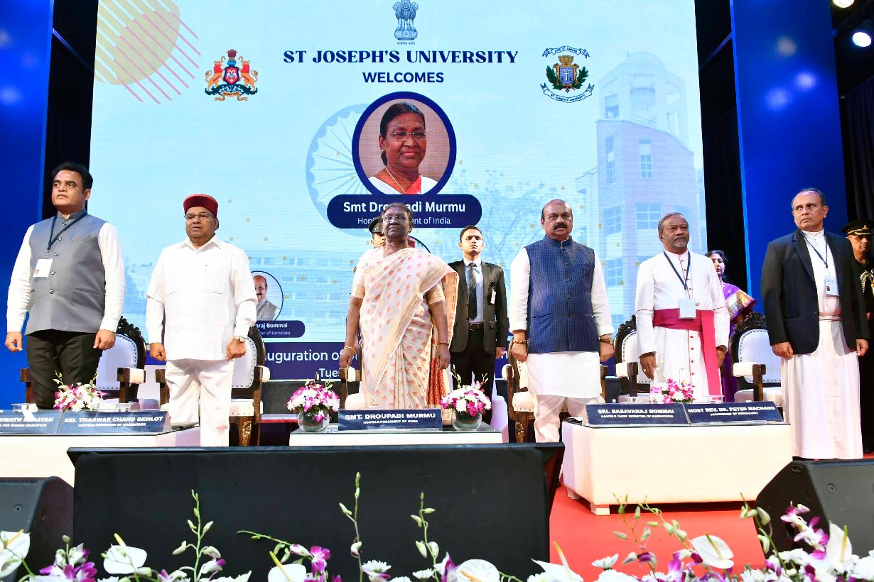 | Caption: | The President of India, Smt. Droupadi Murmu gracing the inaugural function of the St. Joseph s University, in Bengaluru, Karnataka on September 27, 2022. |