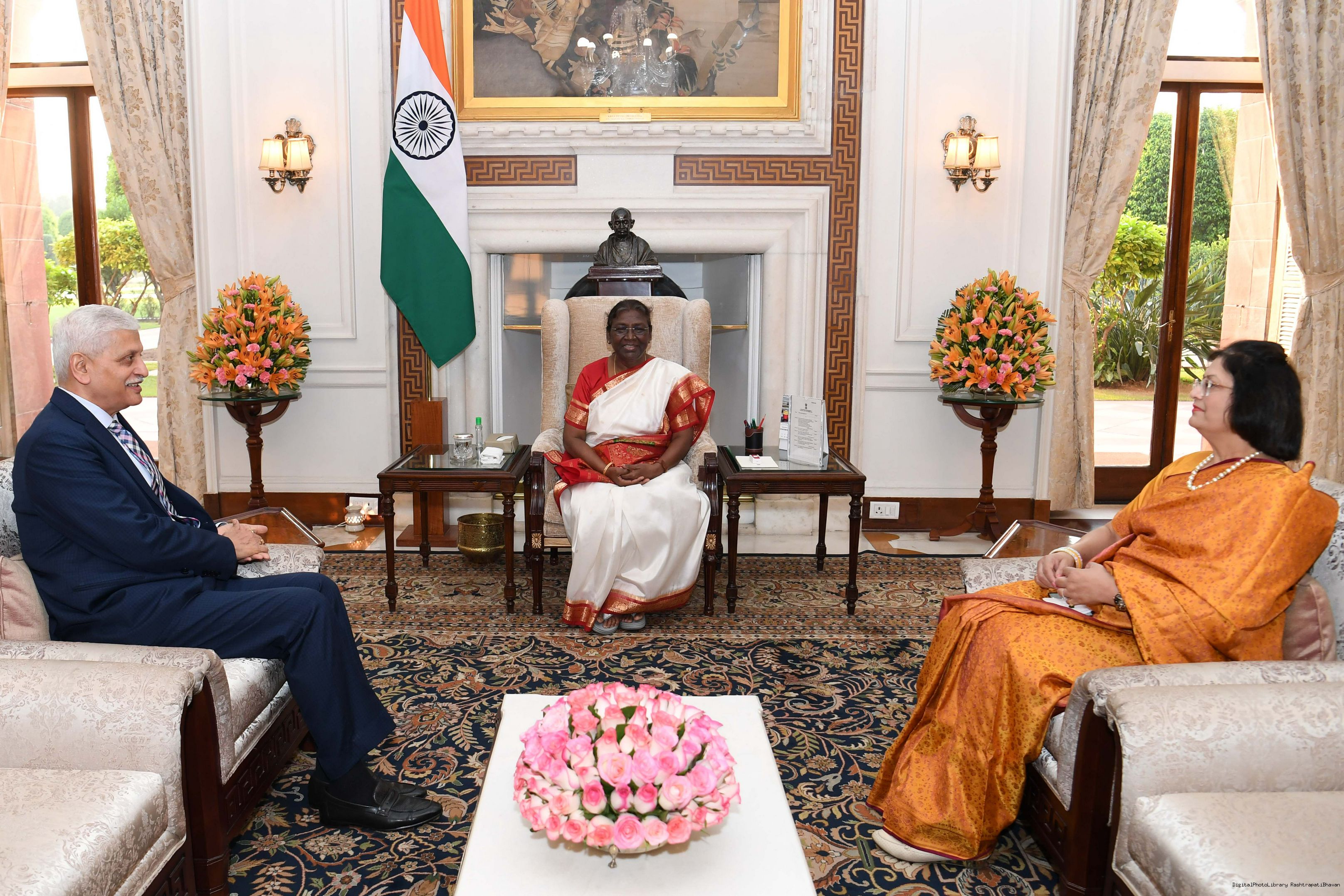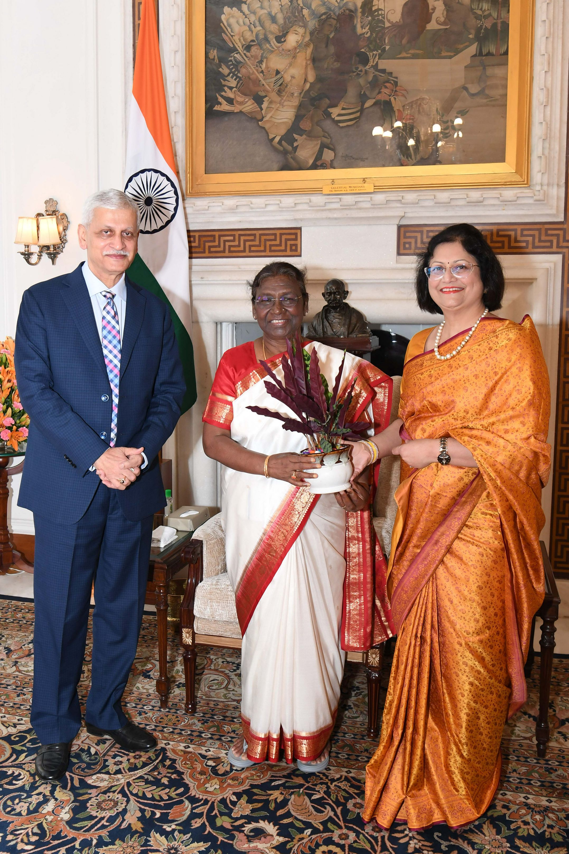 | Caption: | The Chief Justice of India, Shri Justice Uday Umesh Lalit along with his wife calling on the President of India, Smt. Droupadi Murmu, at Rashtrapati Bhavan on September 29, 2022. |