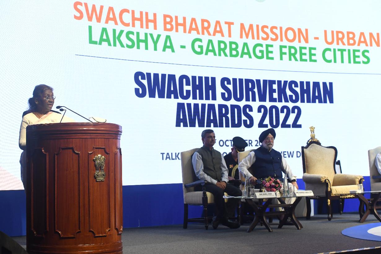 | Caption: | The President of India, Smt. Droupadi Murmu presented the Swachh Survekshan Awards 2022, in New Delhi October 01, 2022. |