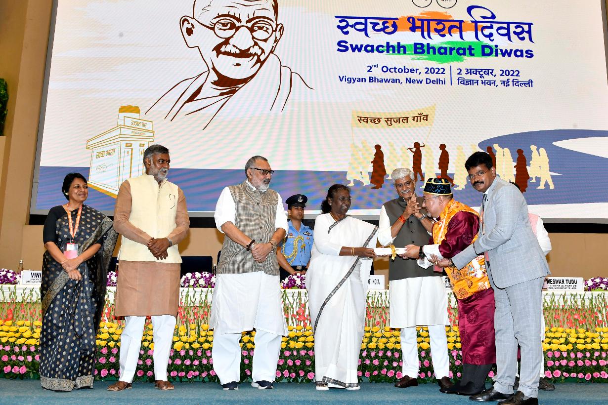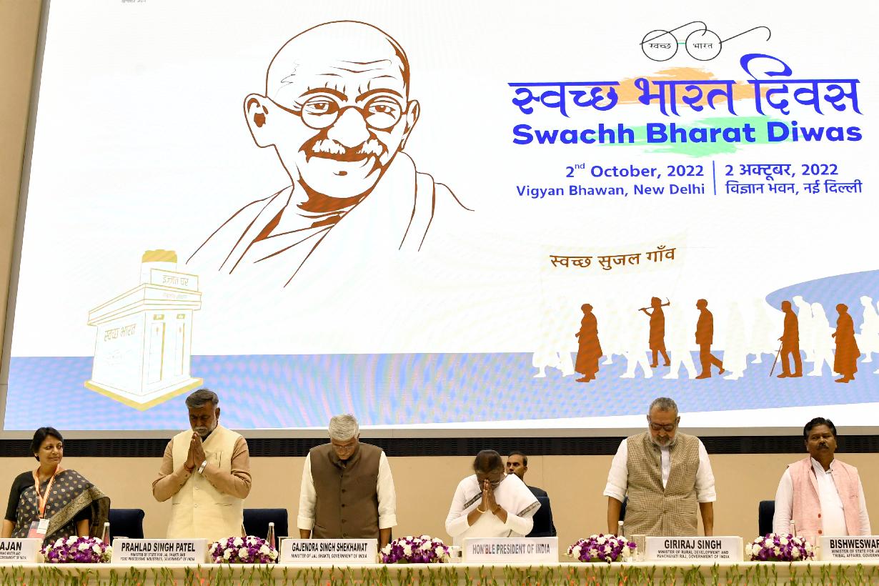 | Caption: | The President of India, Smt. Droupadi Murmu graced the Swachh Bharat Diwas celebrations organised by the Ministry of Jal Shakti, at Vigyan Bhawan, in New Delhi on October 02, 2022. The President also presented Swachh Survekshan Grameen awards in various categories. |