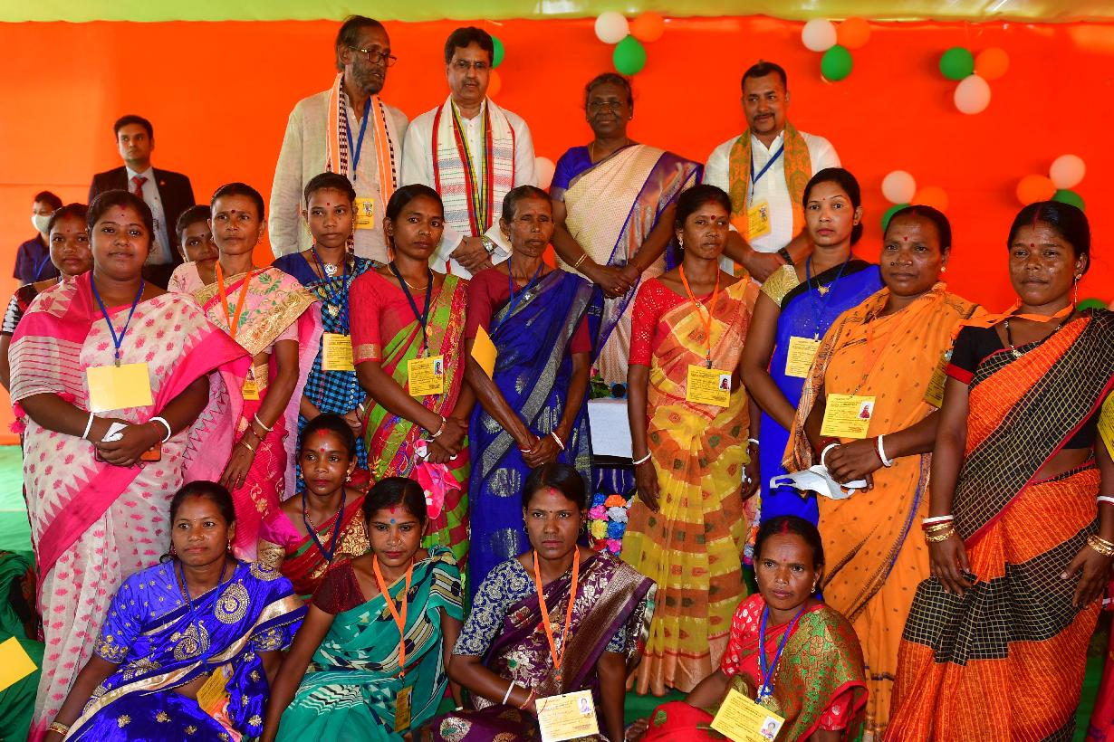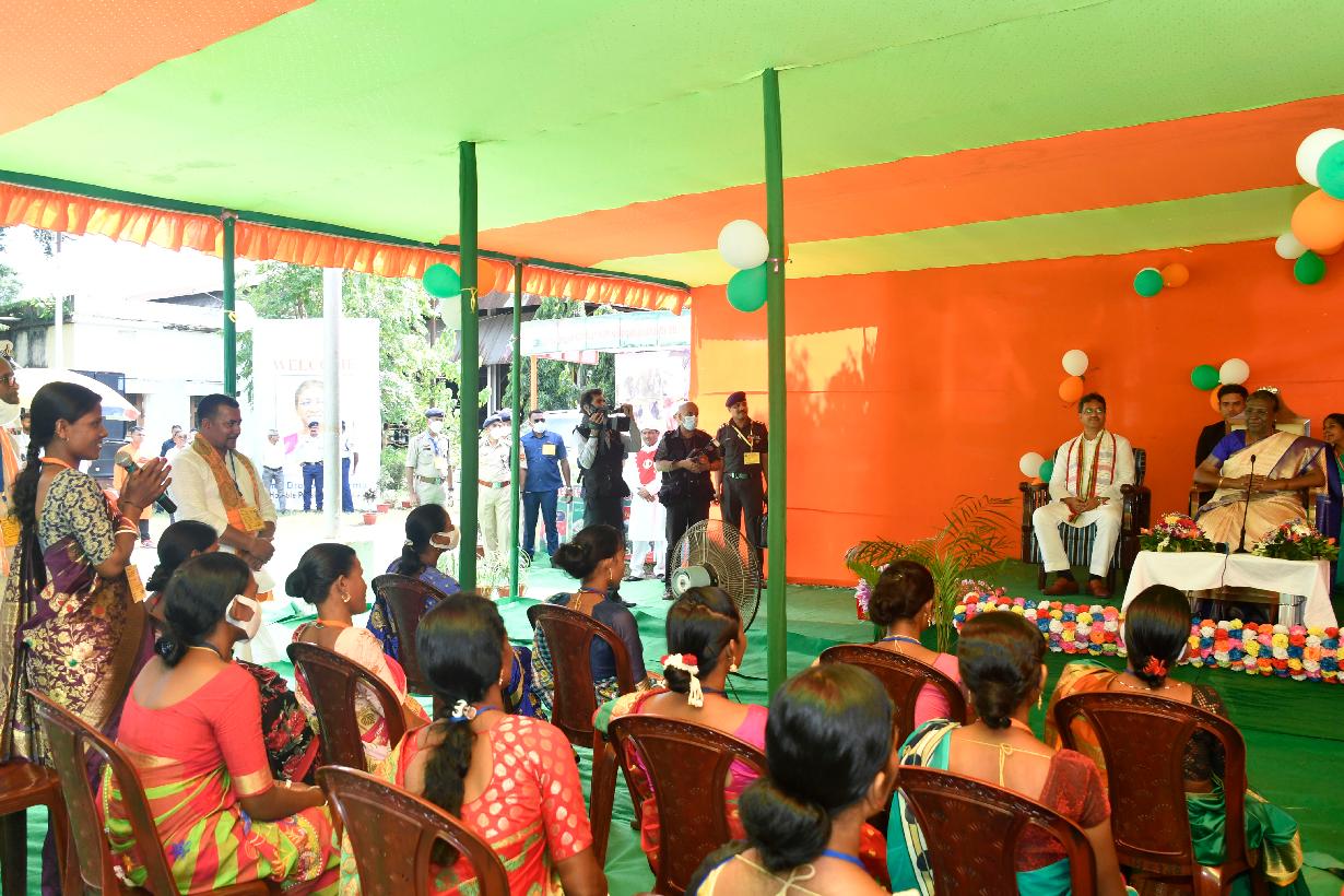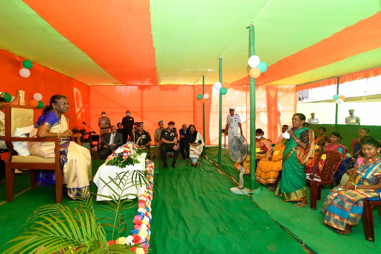 | Caption: | The President of India, Smt. Droupadi Murmu interacts with women tea workers of Durgabari Tea Estate, in Agartala on October 12, 2022. |