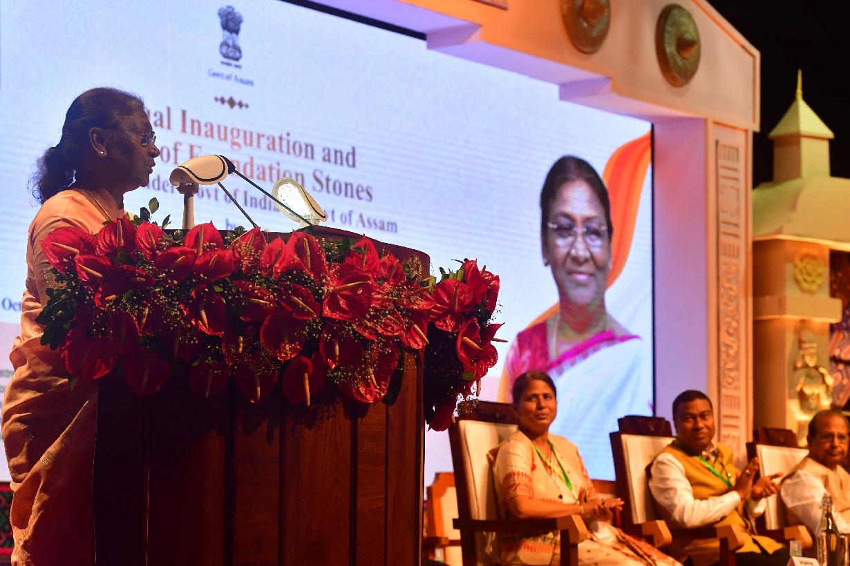 | Caption: | The President of India, Smt. Droupadi Murmu virtually inaugurated and laid the foundation stones for various Union and State government projects related to education, connectivity and infrastructure development, at Guwahati, in Assam on October 14, 2022. |