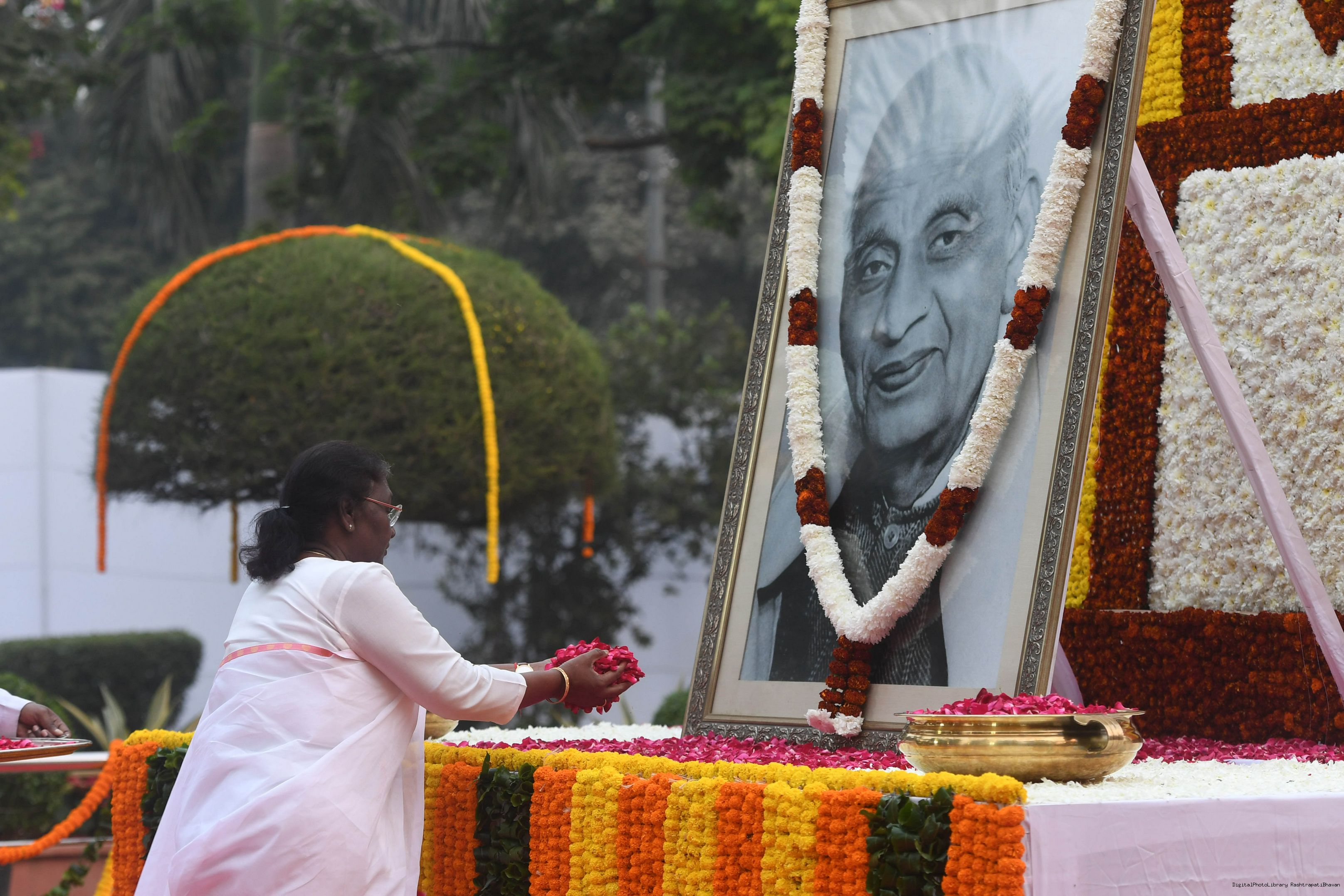 | Caption: | The President of India, Smt. Droupadi Murmu paid floral tributes to Sardar Vallabhbhai Patel on his birth anniversary, at Patel Chowk, in New Delhi on October 31, 2022. |