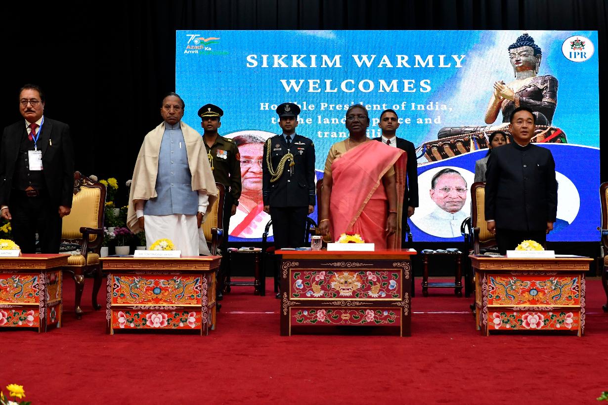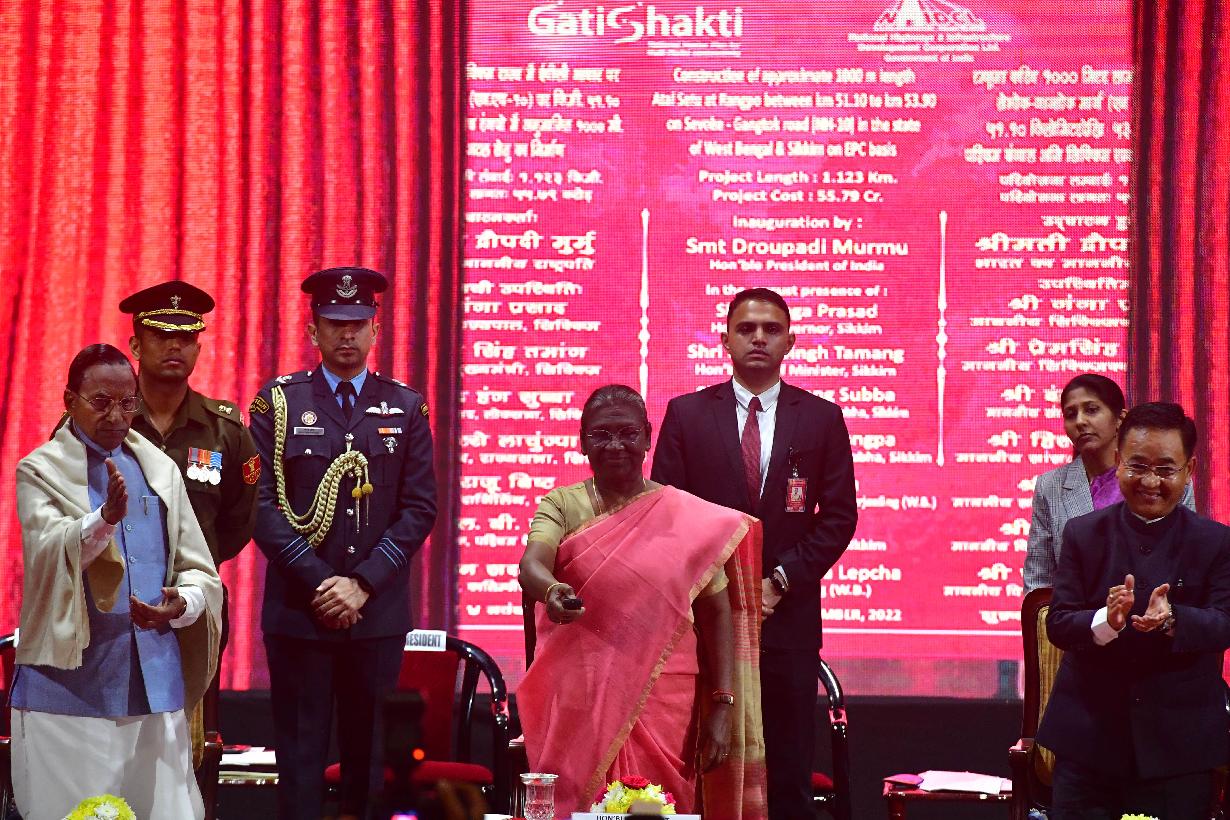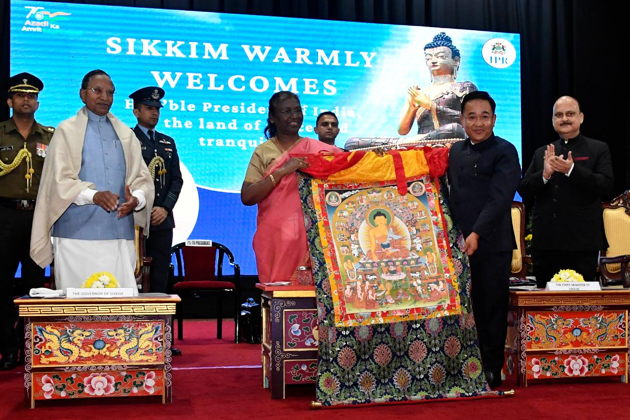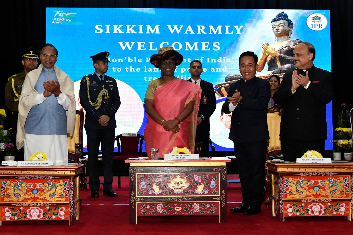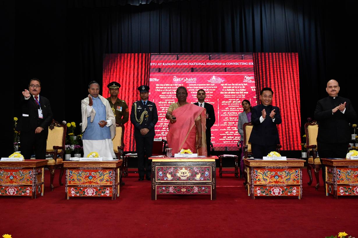 | Caption: | The President of India, Smt. Droupadi Murmu attended the civic reception hosted in her honour by the Government of Sikkim and virtually inaugurated/laid the foundation stone for various projects related to education, health, road infrastructure and tourism, at Gangtok on November 04, 2022. |