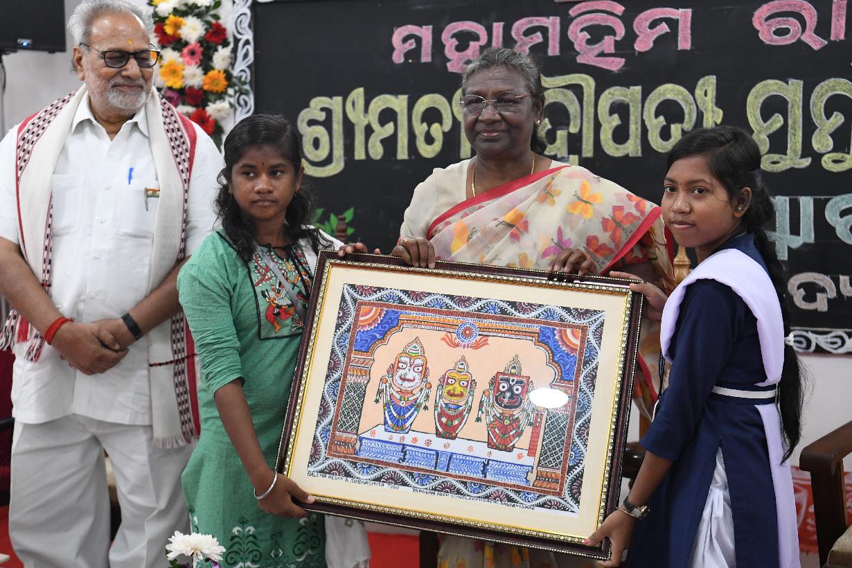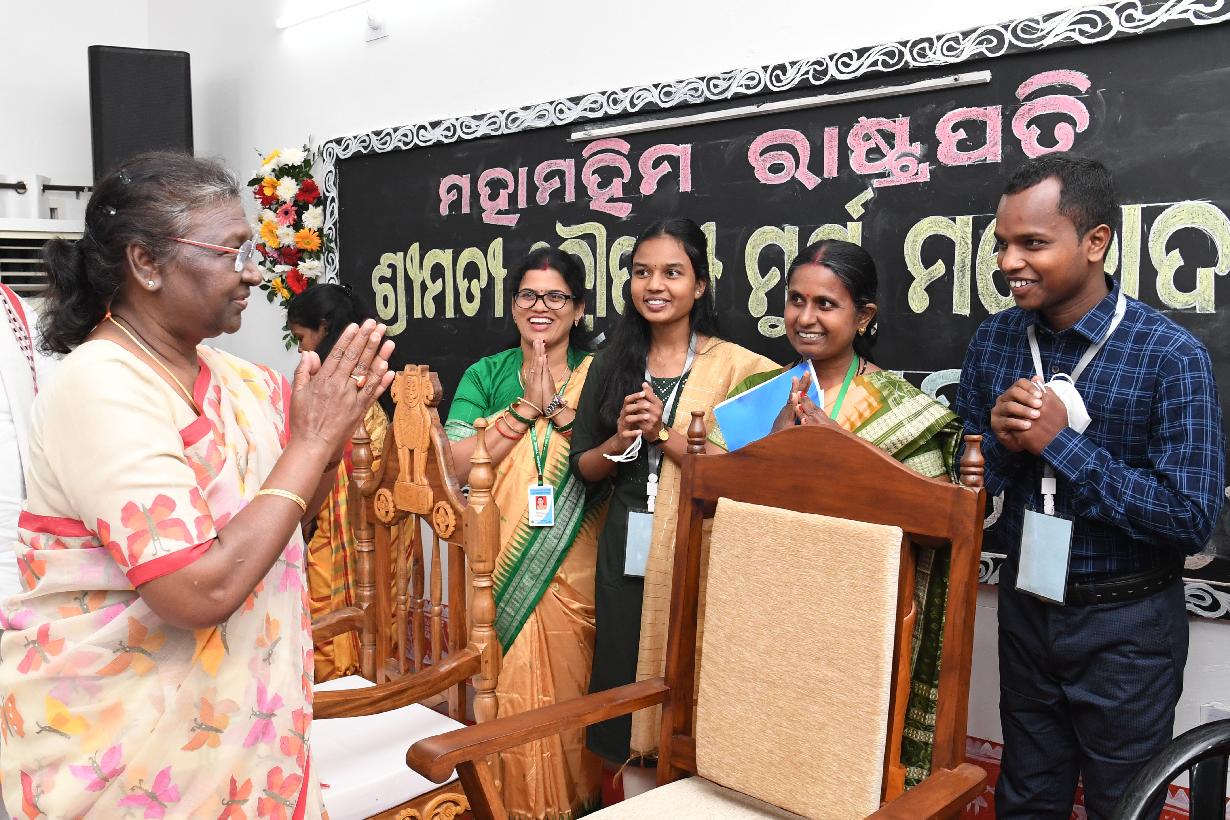 | Caption: | The President of India, Smt. Droupadi Murmu interacting with the students of Tapoban High School, Khandagiri, in Bhubaneswar on November 11, 2022. |