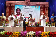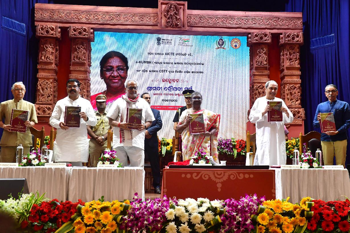 | Caption: | The President of India, Smt. Droupadi Murmu launched various projects of the Union Ministry of Education, at Jayadev Bhawan, in Bhubaneswar on November 11, 2022. |