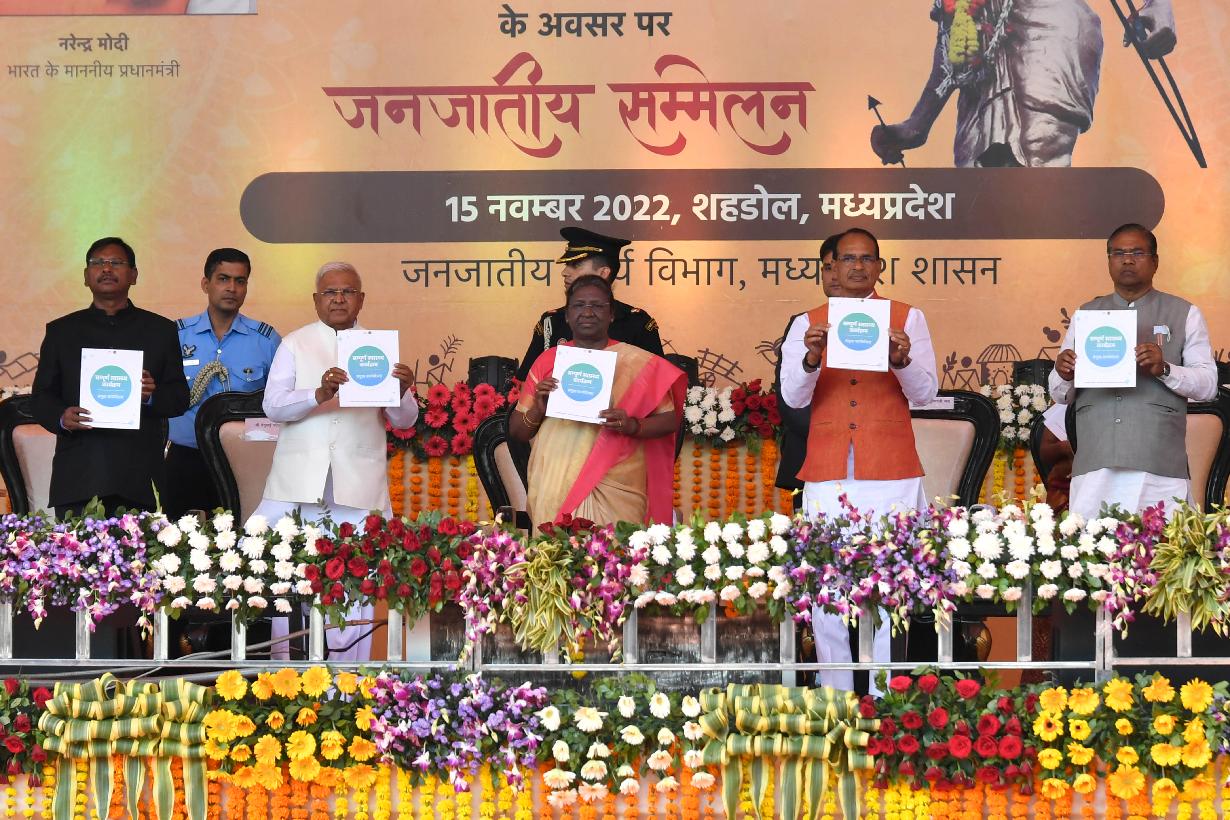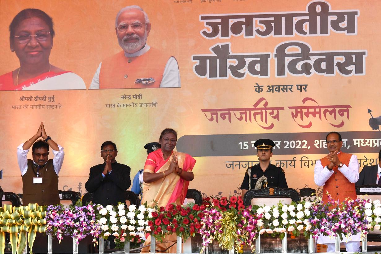 | Caption: | The President of India, Smt. Droupadi Murmu gracing the Janjatiya Samagam, at Shahdol, in Madhya Pradesh on November 15, 2022. |