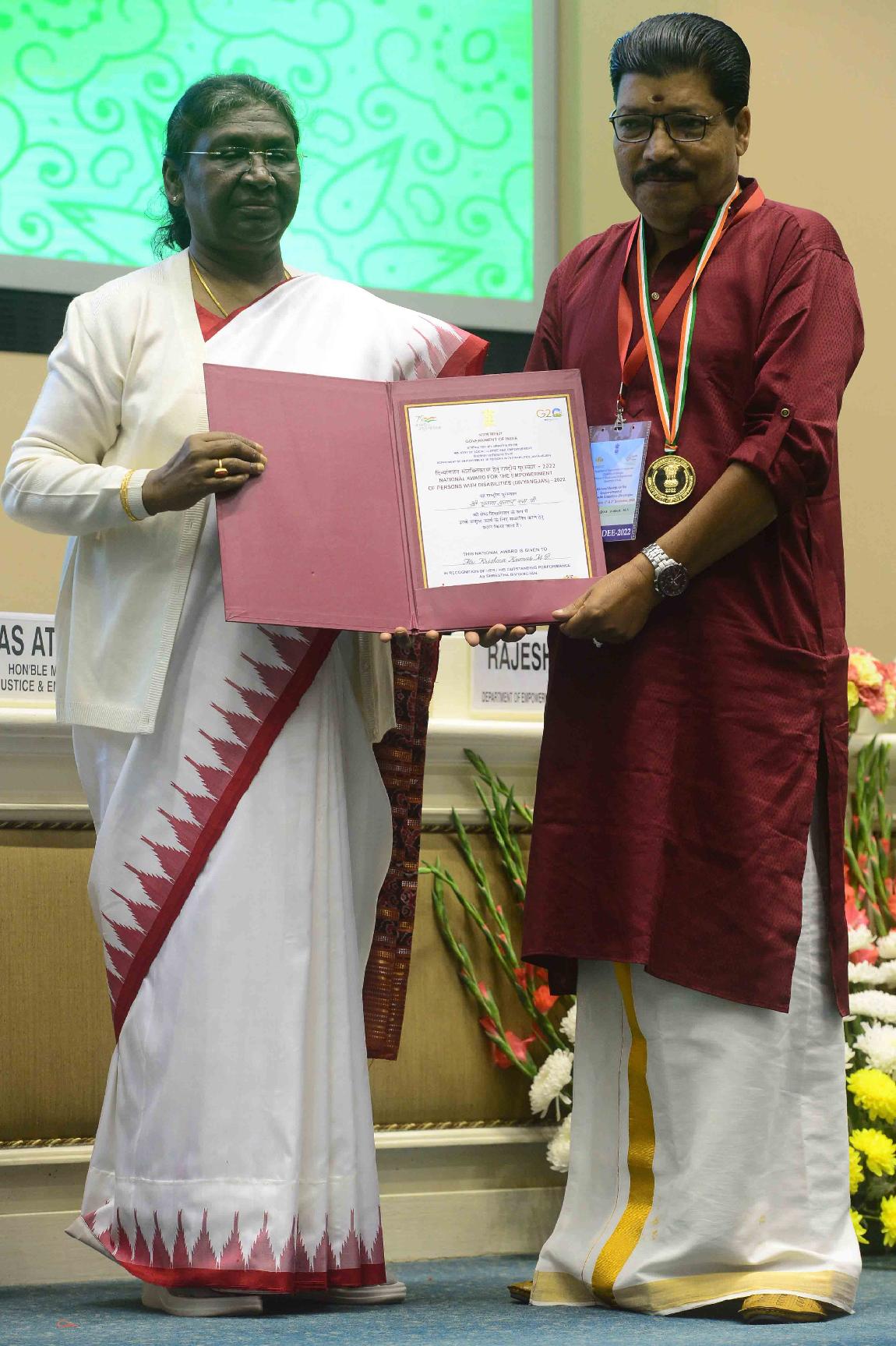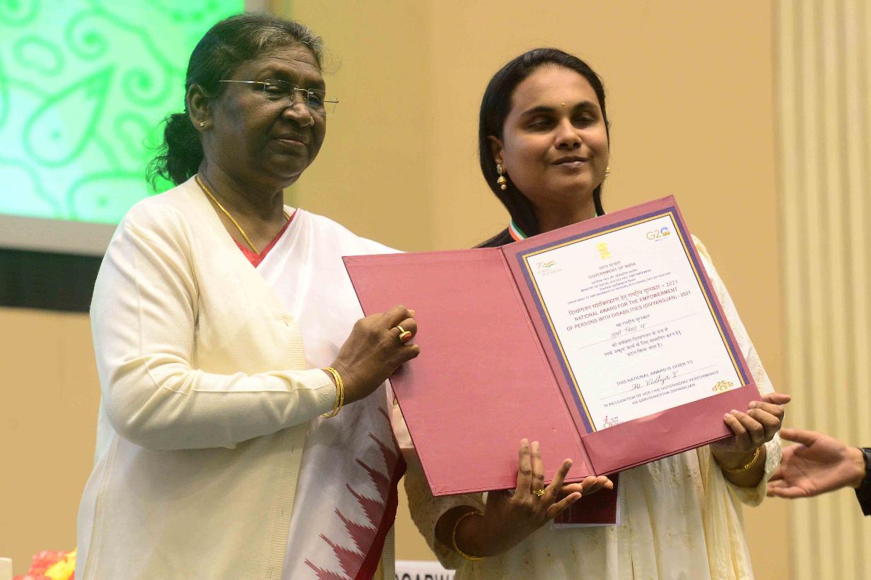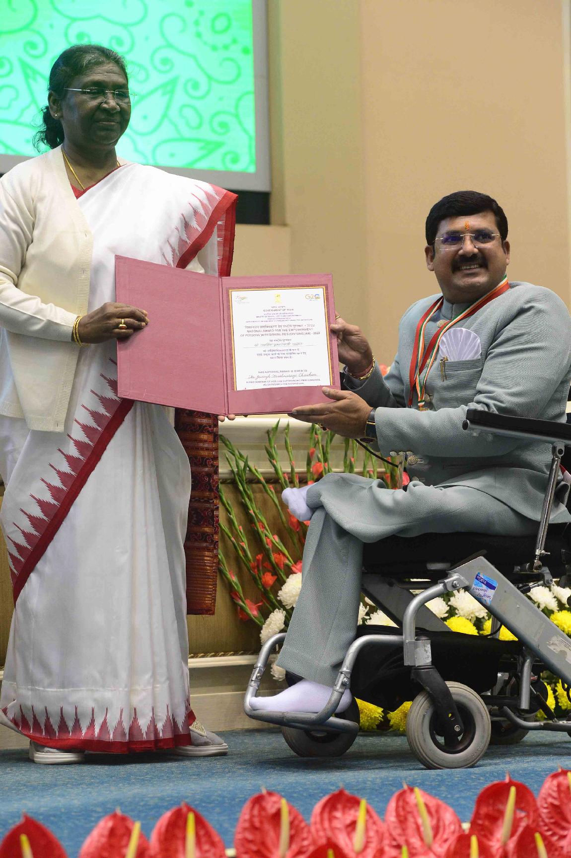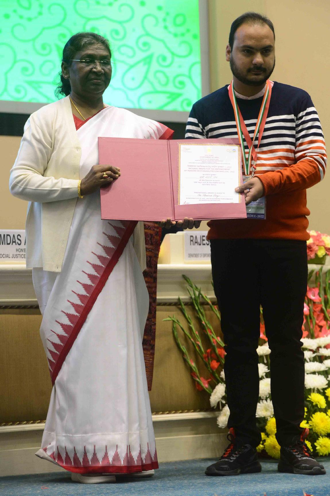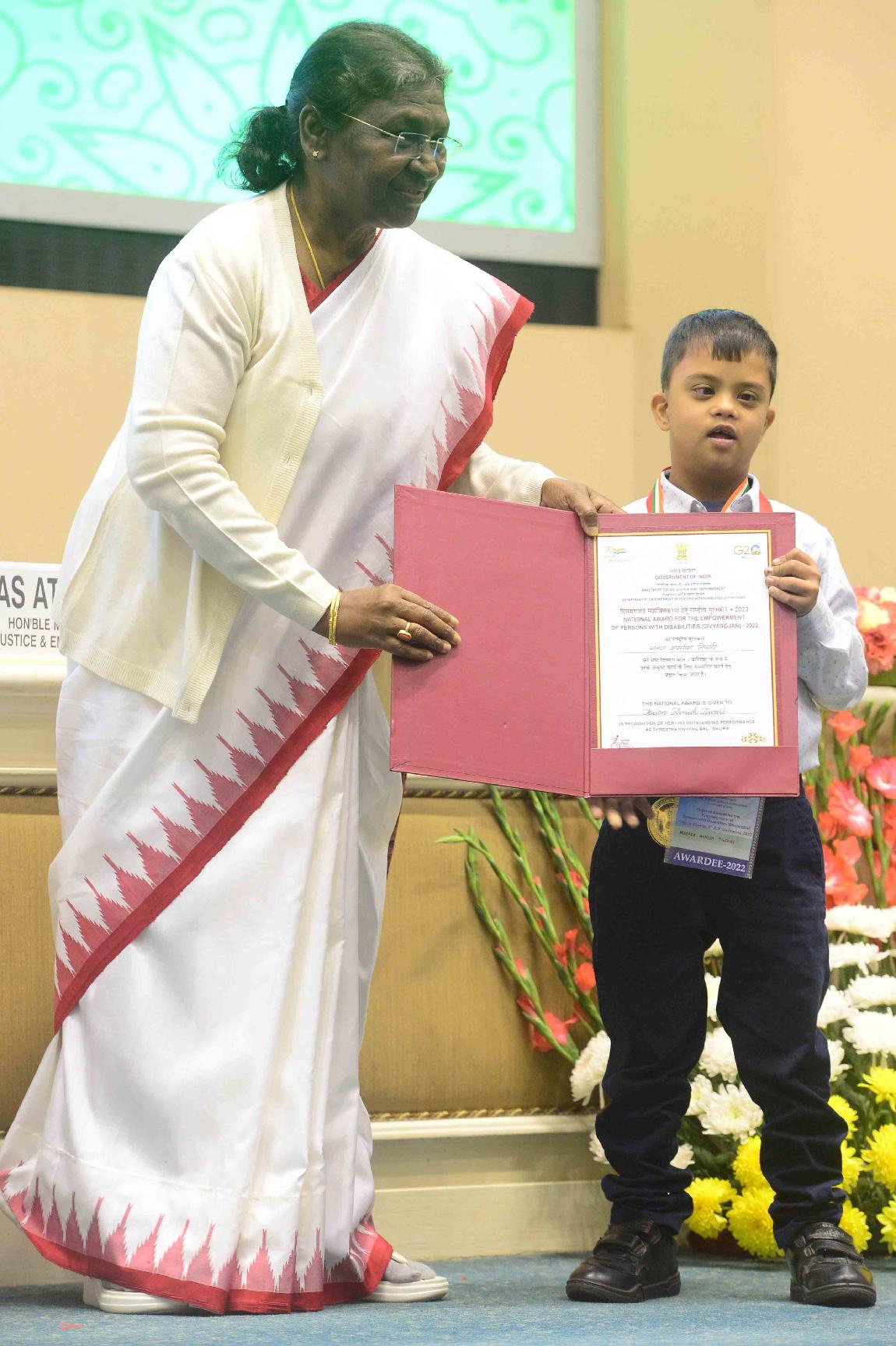 | Caption: | The President of India, Smt. Droupadi Murmu presented the National Awards for the Empowerment of Persons with Disabilities for the year 2021 and 2022, on the occasion of the International Day of Persons with Disabilities, in New Delhi on December 03, 2022. |