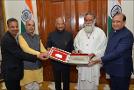 | Caption: | The Minister of Skill Development & Industrial Training, Govt. of Haryana, Shri Mool Chand Sharma along with Swami Gyananand Ji Maharaj meeting with the President of India, Shri Ram Nath Kovind, at Rashtrapati Bhavan on March 07, 2020. |