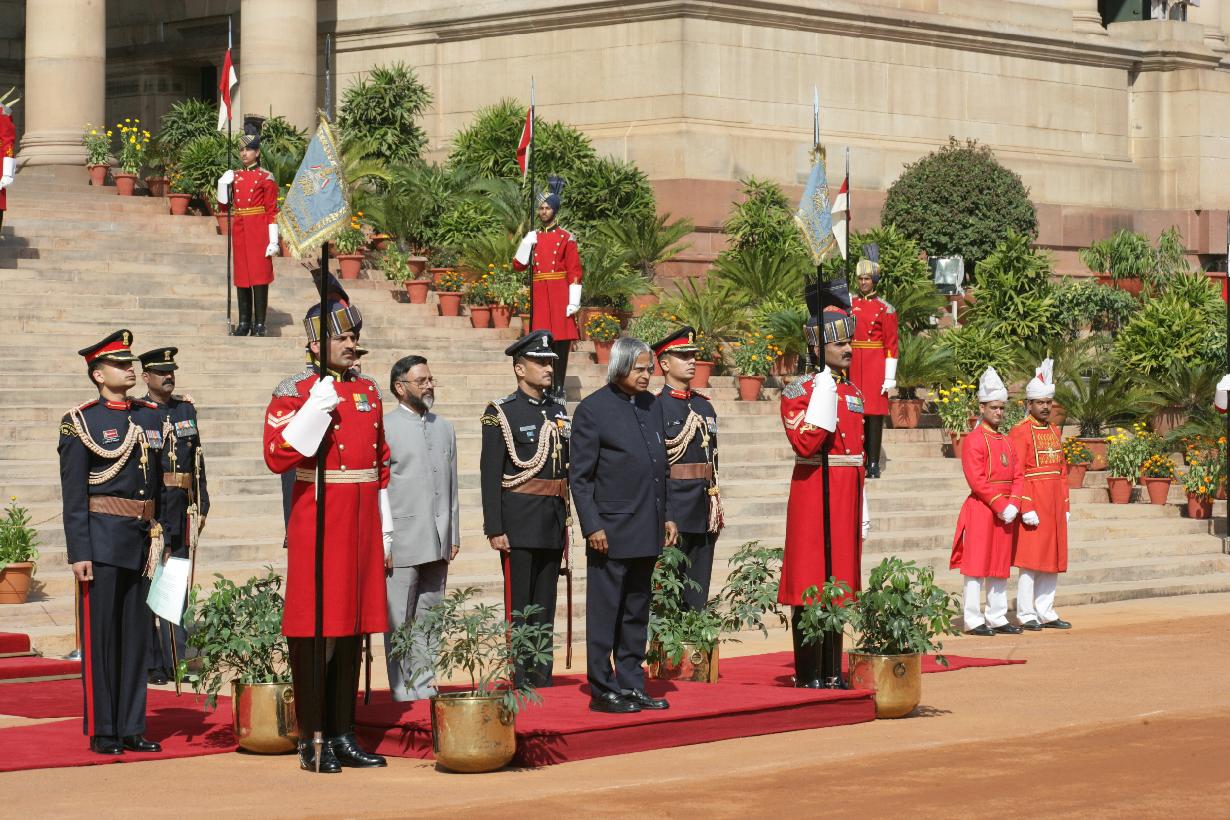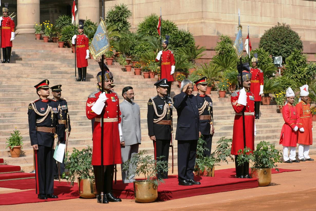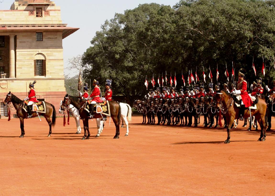 | Caption: | The PBG presenting the National Salute to the President of India, Dr A P J Abdul Kalam at the Forecourt of Rashtrapati Bhavan in New Delhi on Feb 23, 2007 |