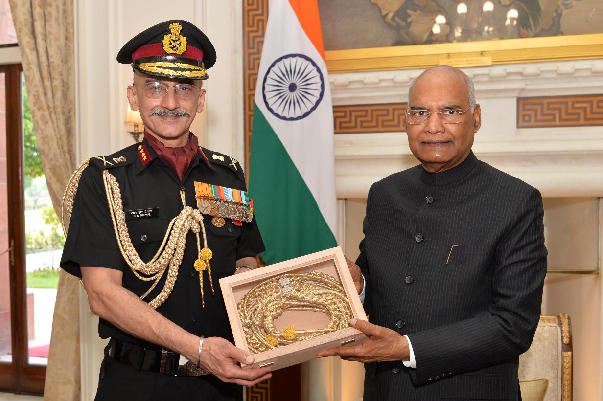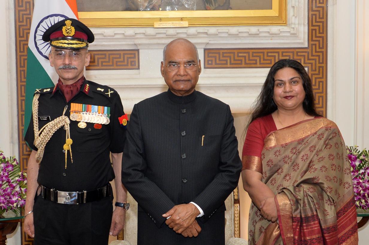 | Caption: | Lt. Gen. Rajan Singh Grewal, PHS, Director General Medical Services (Army) along with his wife Dr. Gurpreet Kaur Grewal meeting with the President of India, Shri Ram Nath Kovind, at Rashtrapati Bhavan on March 11, 2020. |