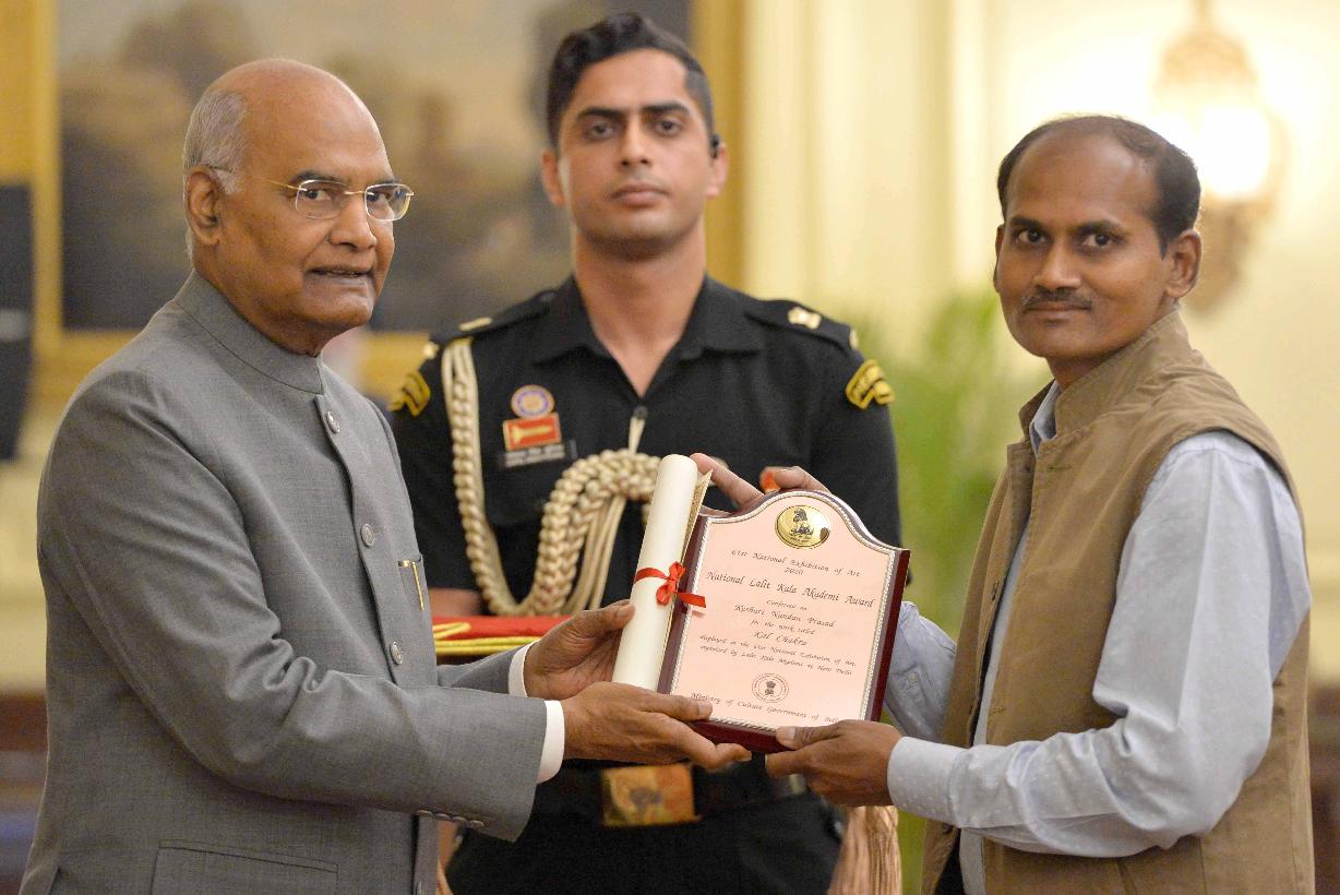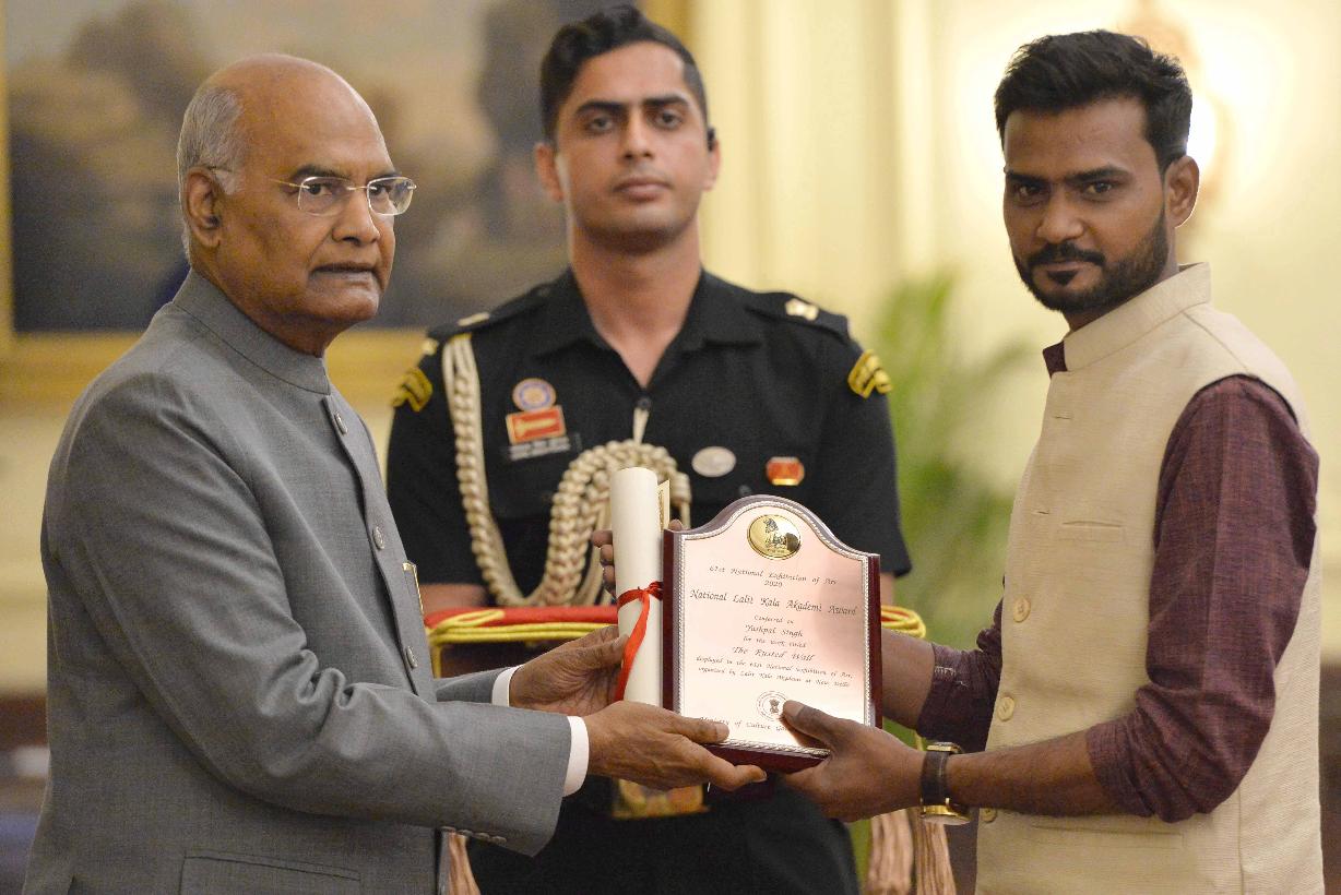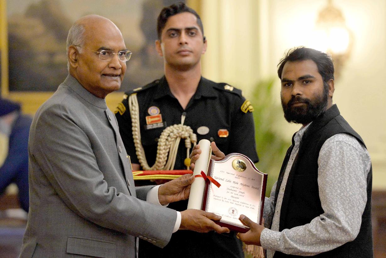 | Caption: | The President of India, Shri Ram Nath Kovind confers the 61st annual Lalit Kala Akademi Awards on meritorious artists at a function, at Rashtrapati Bhavan on March 04, 2020. |