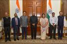 The Minister of State (IC) for Youth Affairs & Sports and Minister of State for Minority Affairs, Shri Kiran Rijiju along with Smt. Usha Sharma, Secretary Youth Affairs, Shri Amit Khare, Secretary (Higher Education) MHRD, Dr. T.V. Somanathan, Secretary (Expenditure), Ministry of Finance, Shri Asit Singh, Joint Secretary, Dept. of Youth Affairs and Dr. Kamal Kumar Kar, Assistant Programme Adviser, National Service Scheme meeting with the President of India, Shri Ram Nath Kovind, at Rashtrapati Bhavan on March 17, 2020. |