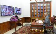 | Caption: | The President of India, Shri Ram Nath Kovind along with the Vice President of India, interacts with the Governors, Lt Governors and Administrators of all the States and Union Territories on issues related to COVID-19 through video conferencing, at Rashtrapati Bhavan on March 27, 2020. |