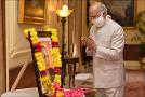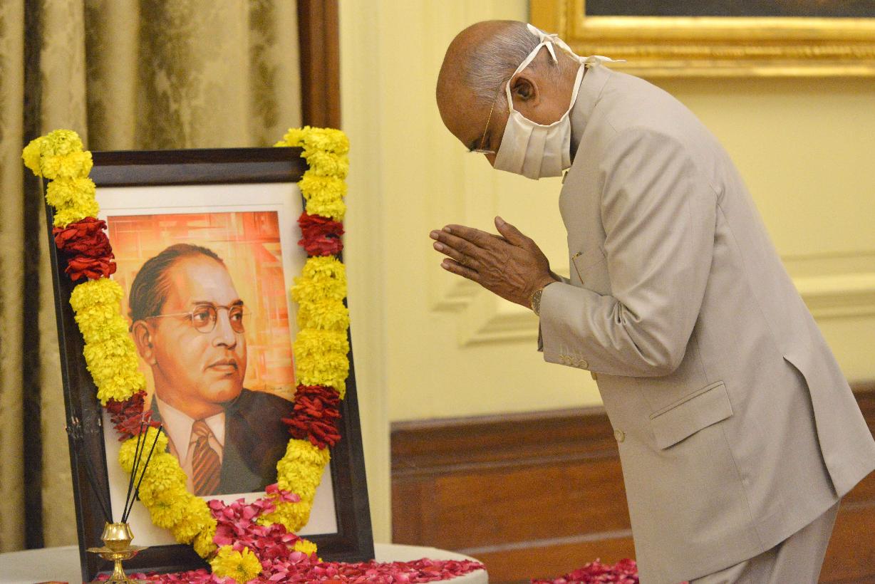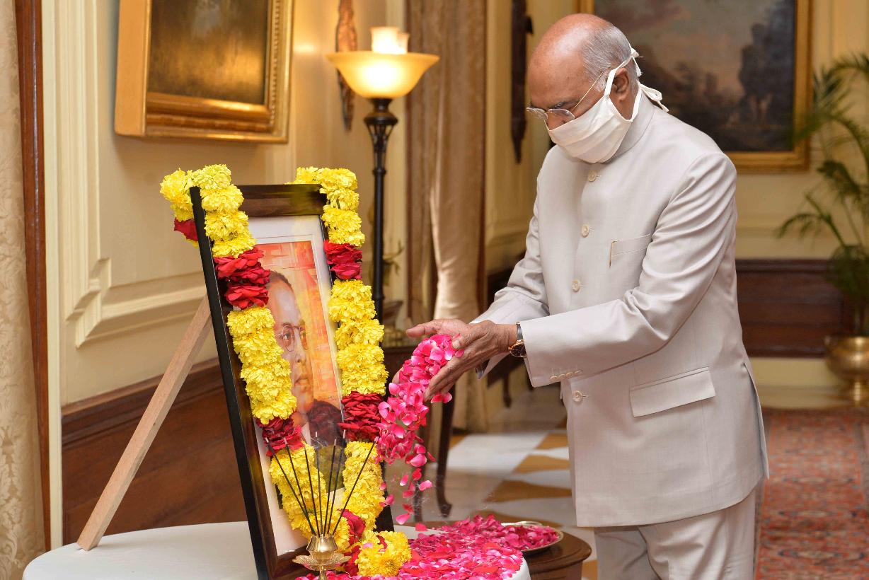 | Caption: | The President of India, Shri Ram Nath Kovind paying tributes to Babasaheb Dr. B.R. Ambedkar on his birth anniversary, at Rashtrapati Bhavan on April 14, 2020. |