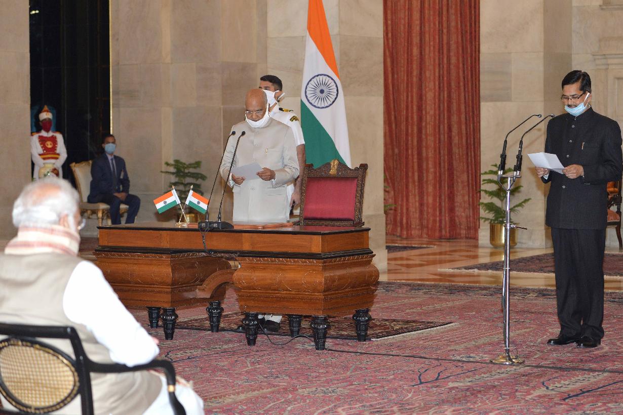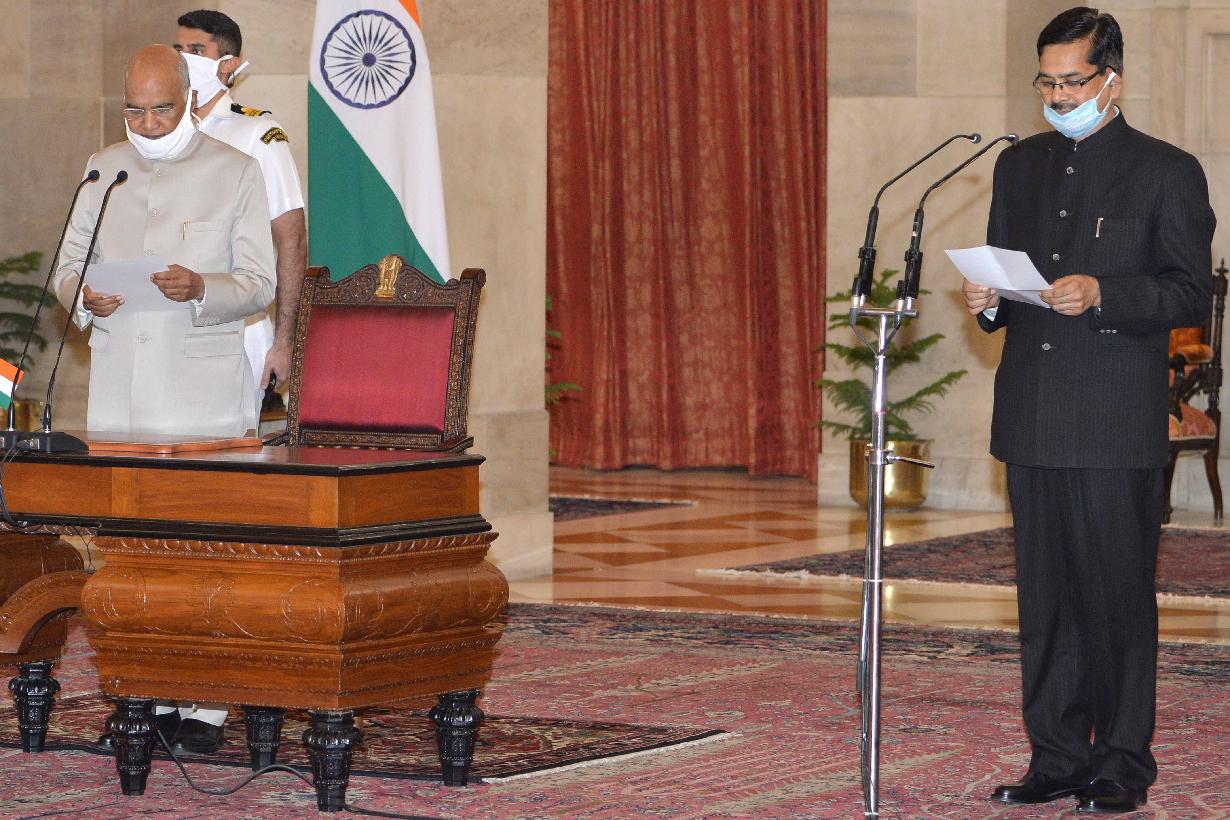 | Caption: | The President of India, Shri Ram Nath Kovind administering the oath of office to Shri Sanjay Kothari as Central Vigilance Commissioner, at Rashtrapati Bhavan on April 25, 2020. |