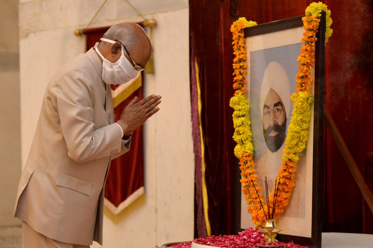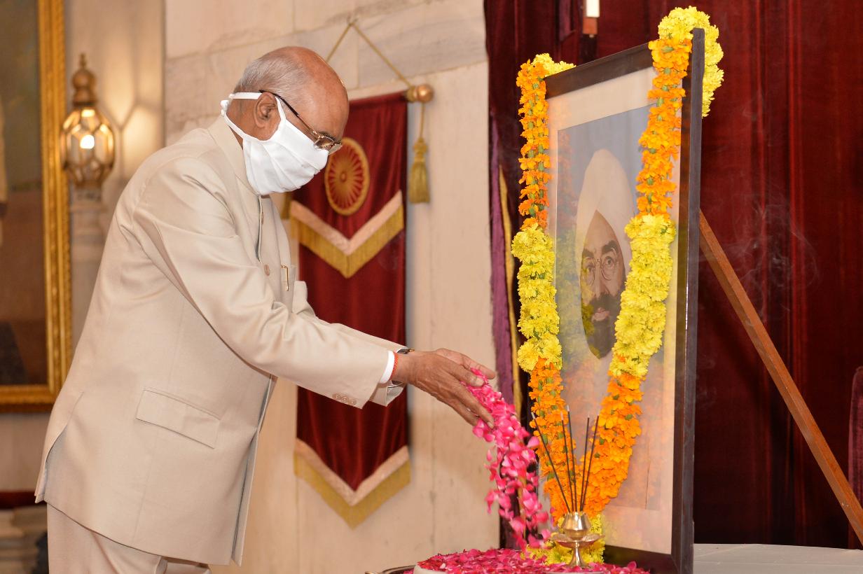 | Caption: | The President of India, Shri Ram Nath Kovind paying tributes to Shri Giani Zail Singh, former President of India, on his birth anniversary, at Rashtrapati Bhavan on May 05, 2020. |