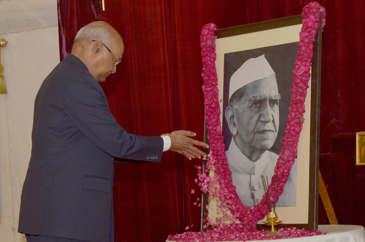 | Caption: | The President of India, Shri Ram Nath Kovind paying tributes to late Shri Fakhruddin Ali Ahmed, former President of India, on his birth anniversary, at Rashtrapati Bhavan on May 13, 2020. |