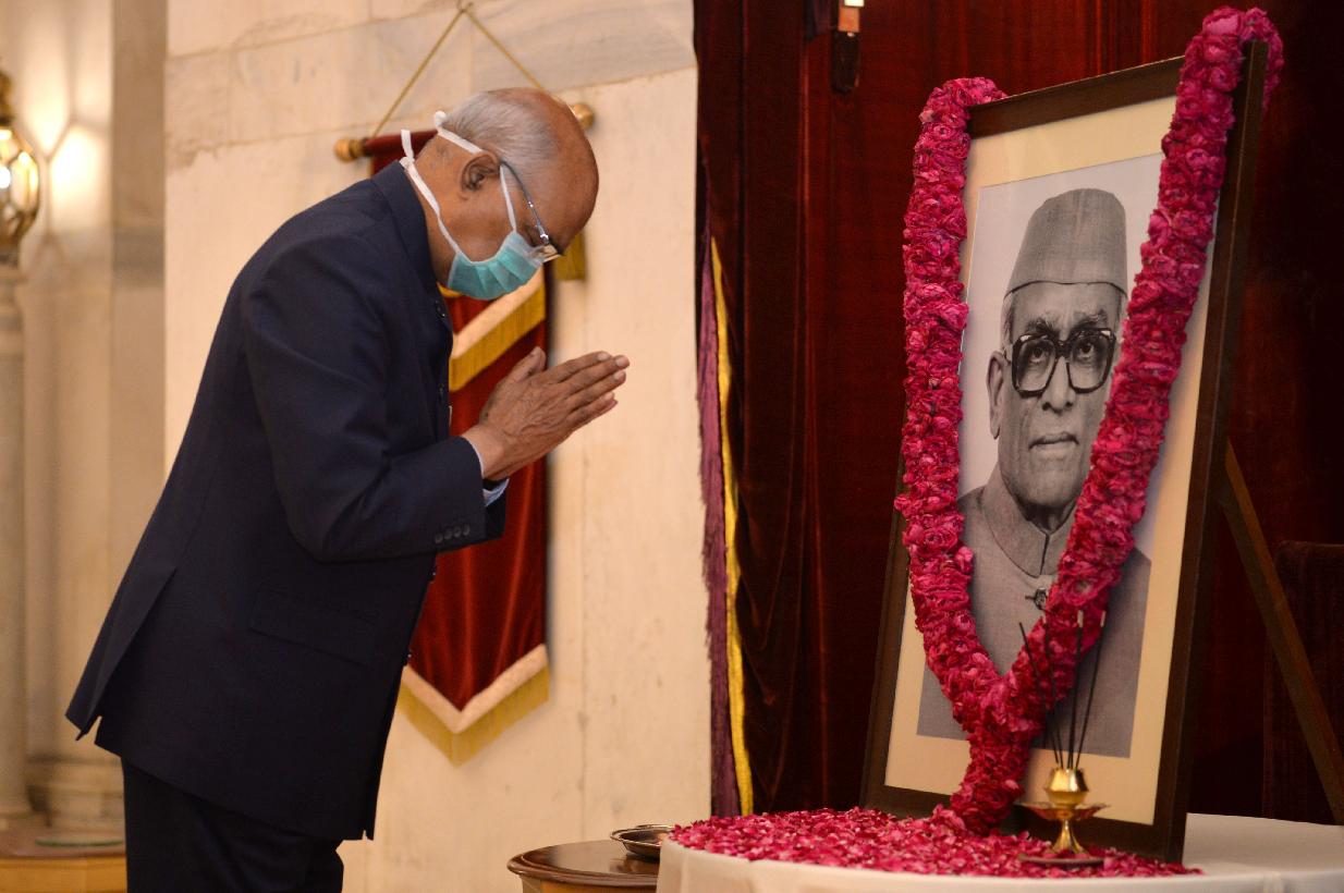 | Caption: | The President of India, Shri Ram Nath Kovind paying tributes to Shri Neelam Sanjiva Reddy, former President of India, on his birth anniversary, at Rashtrapati Bhavan on May 19, 2020. |