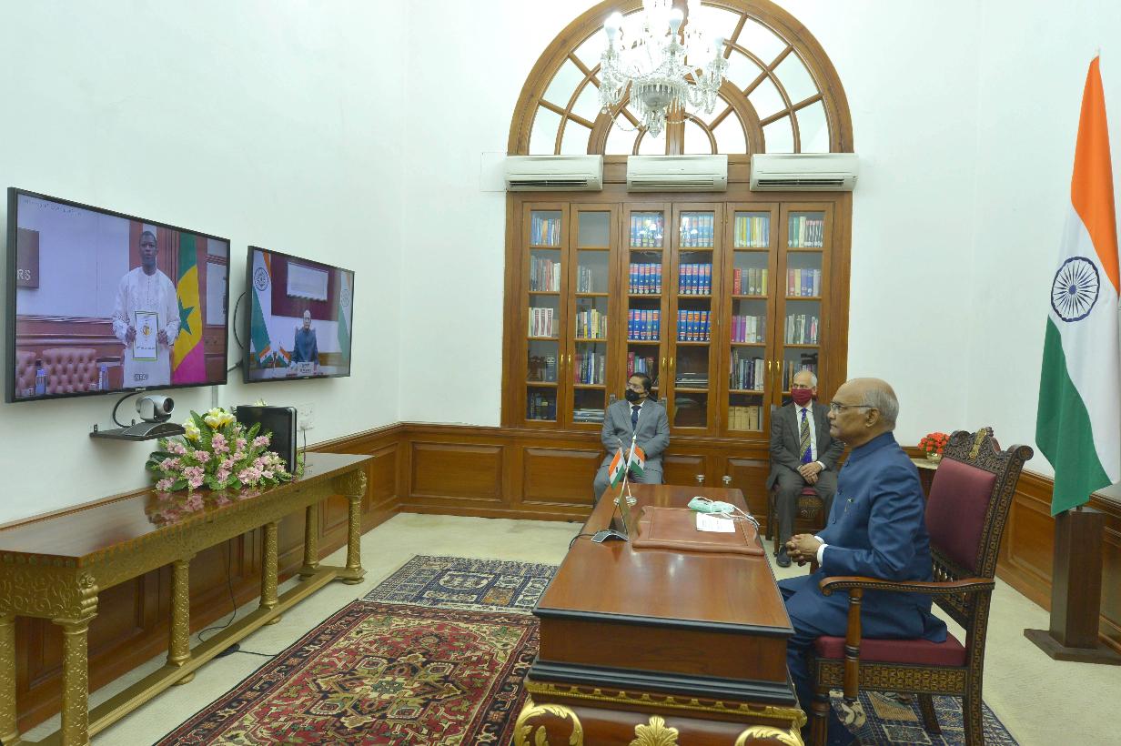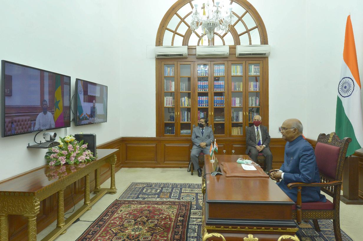 | Caption: | The Ambassador-designate of the Republic of Senegal, H.E. Mr. Abdoul Wahab Haidara presenting his credentials to the President of India, Shri Ram Nath Kovind through video conferencing, at Rashtrapati Bhavan on May 21, 2020. |