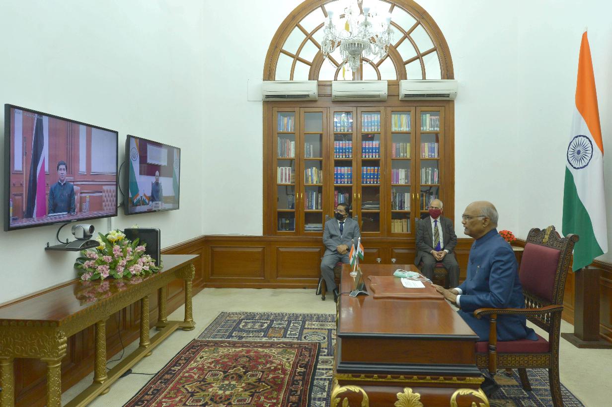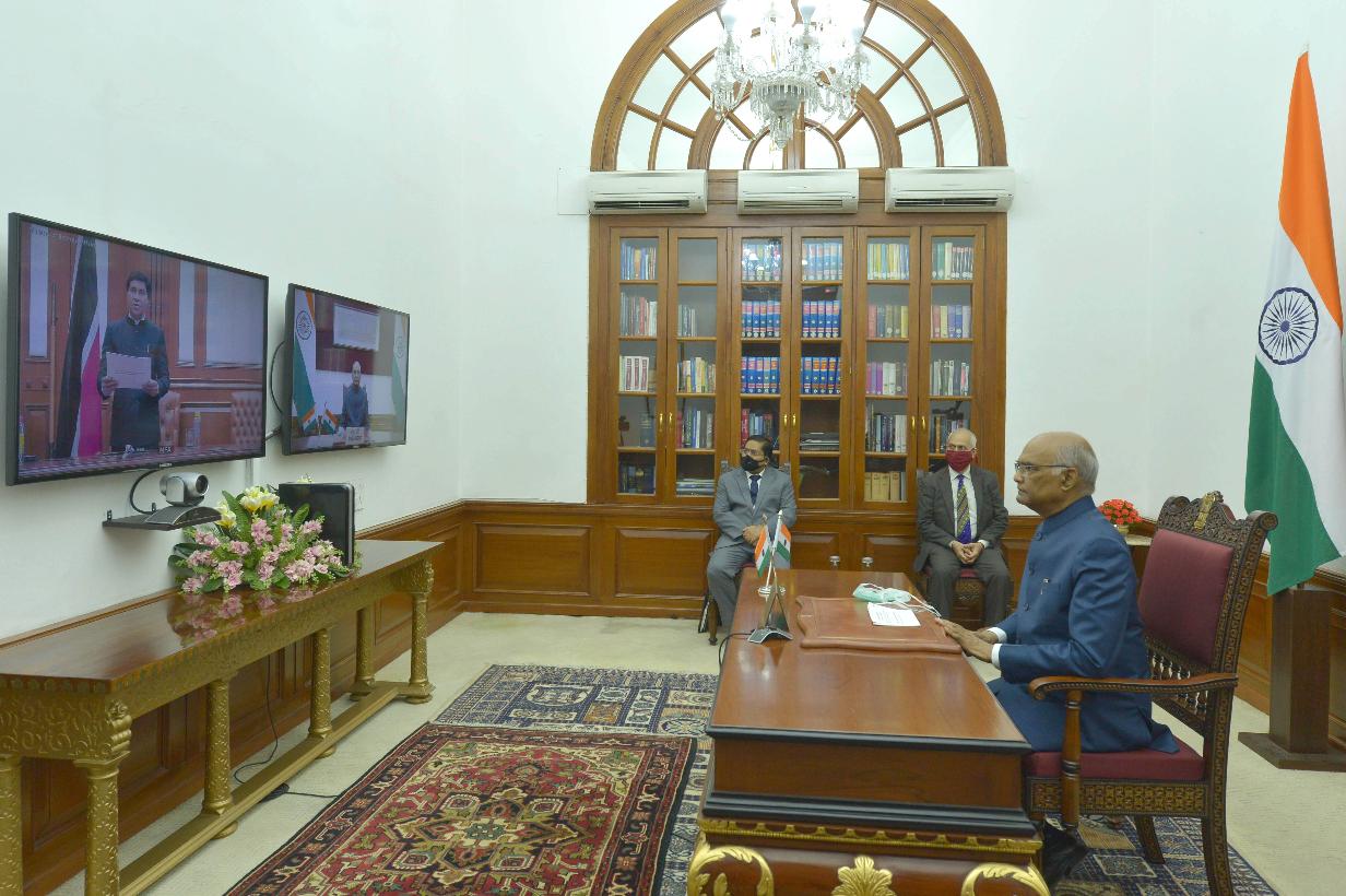 | Caption: | The High Commissioner-designate of the Republic of Trinibad & Tobago, H.E. Dr. Roger Gopaul presenting his credentials to the President of India, Shri Ram Nath Kovind through video conferencing, at Rashtrapati Bhavan on May 21, 2020. |