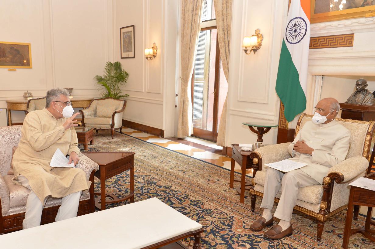 | Caption: | Shri Derek O Brien, MP (RS) & Leader, All India Trinamool Congress Parliamentary Party, Rajya Sabha meeting with the President of India, Shri Ram Nath Kovind, at Rashtrapati Bhavan on July 15, 2020. |