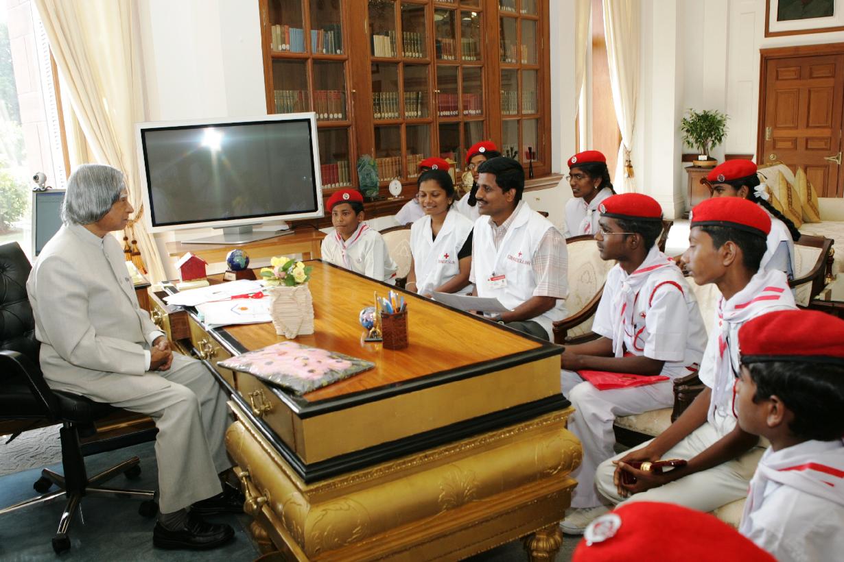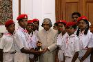 | Caption: | The Students and Teacher from the Municipal Schools of Ammapet & Mettur District of Salem calling on the President of India, Dr A P J Abdul Kalam at Rashtrapati Bhavan in New Delhi on May 23, 2006 |