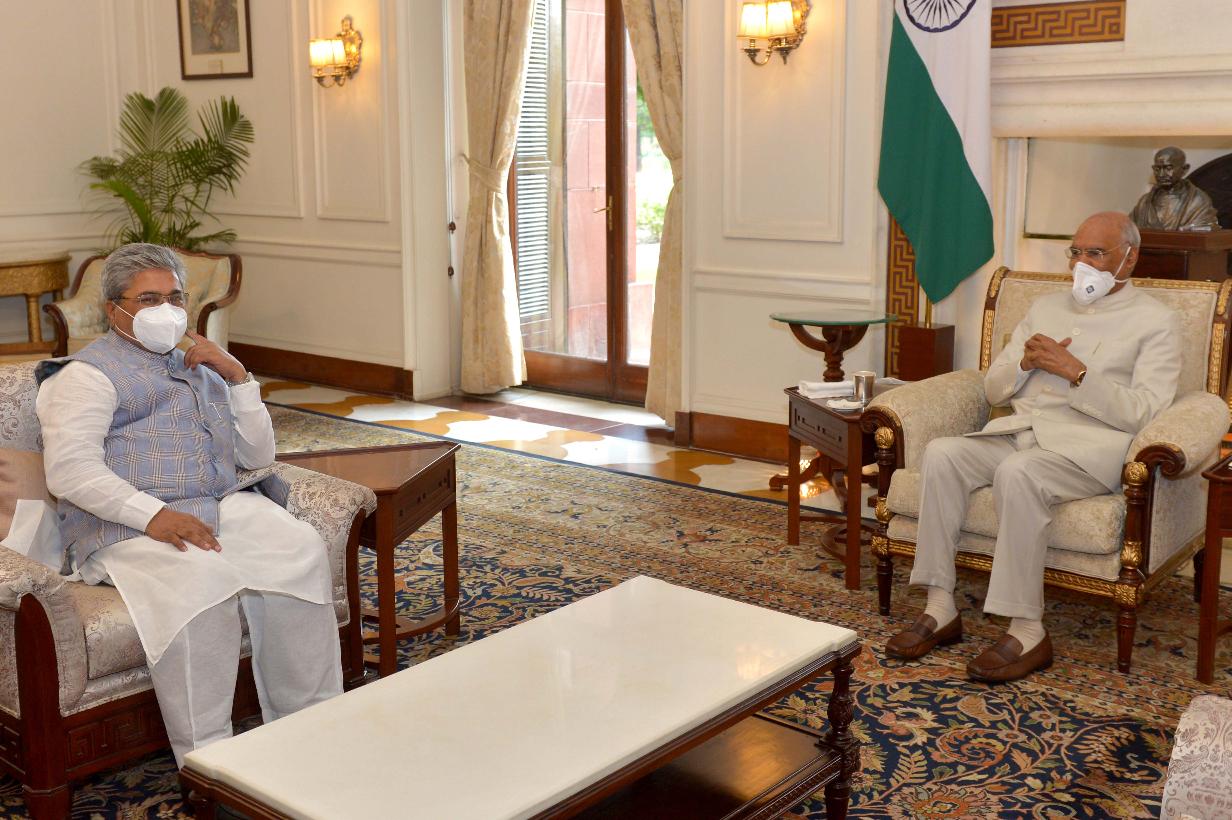 | Caption: | Shri Dushyant Gautam, MP (RS) meeting with the President of India, Shri Ram Nath Kovind, at Rashtrapati Bhavan on July 20, 2020. |