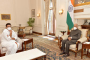 | Caption: | Shri K. Raghu Rama Krishna Raju, MP (LS) & Chairman, Standing Committee on Subordinate Legislation, Lok Sabha meeting with the President of India, Shri Ram Nath Kovind, at Rashtrapati Bhavan on July 21, 2020. |