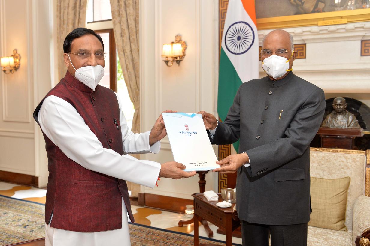 | Caption: | The Minister for Education, Dr. Ramesh Pokhriyal 'Nishank' meeting with the President of India, Shri Ram Nath Kovind and presented him the new National Education Policy 2020, at Rashtrapati Bhavan on August 04, 2020. |