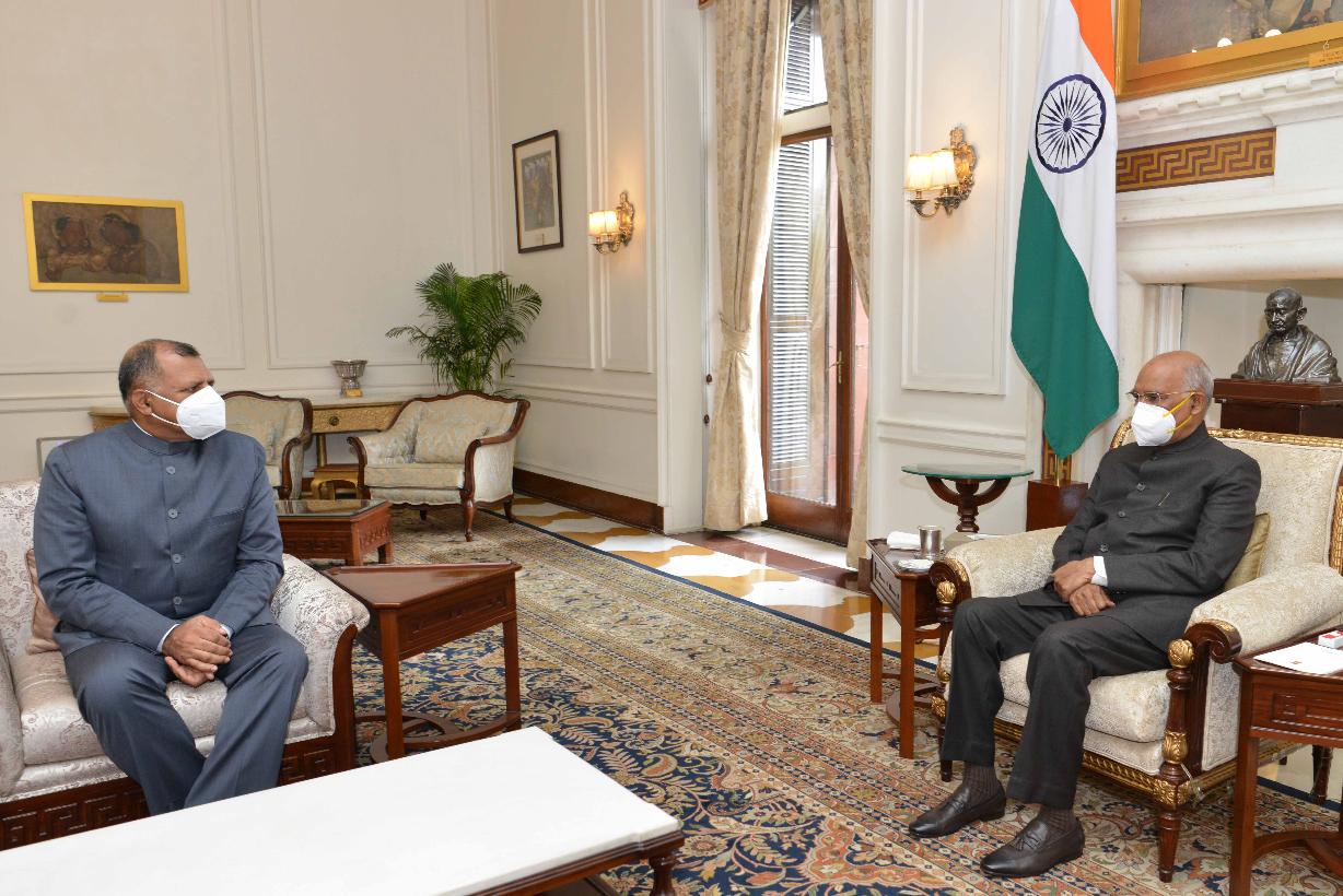| Caption: | The Ambassador-designate of India to Niger, Shri Prem Kumar Nair meeting with the President of India, Shri Ram Nath Kovind, at Rashtrapati Bhavan on August 24, 2020. |